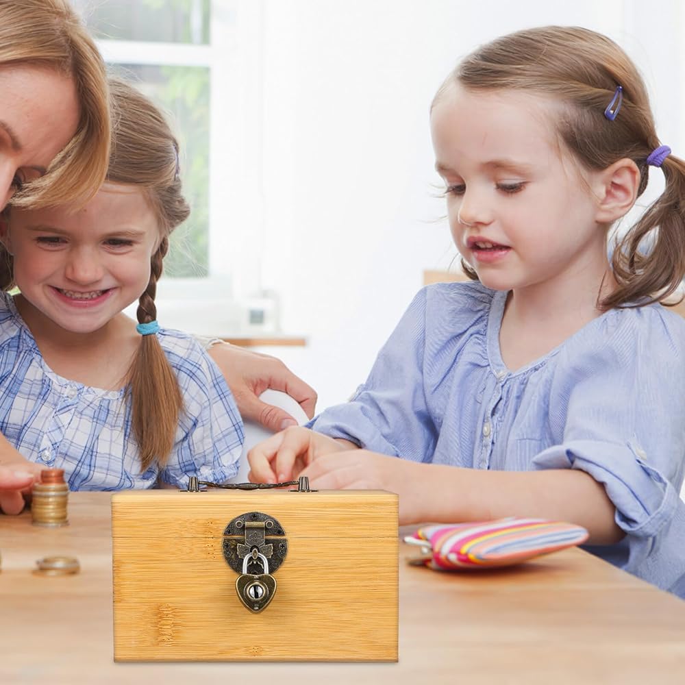 MULTIFUNCTIONAL - Vintage Decorative Wooden Box is both a home accessory and a storage space for various items, not only practical but also a work of art. The piggy bank can be a piggy bank or a delicate decoration for the home, office, etc.