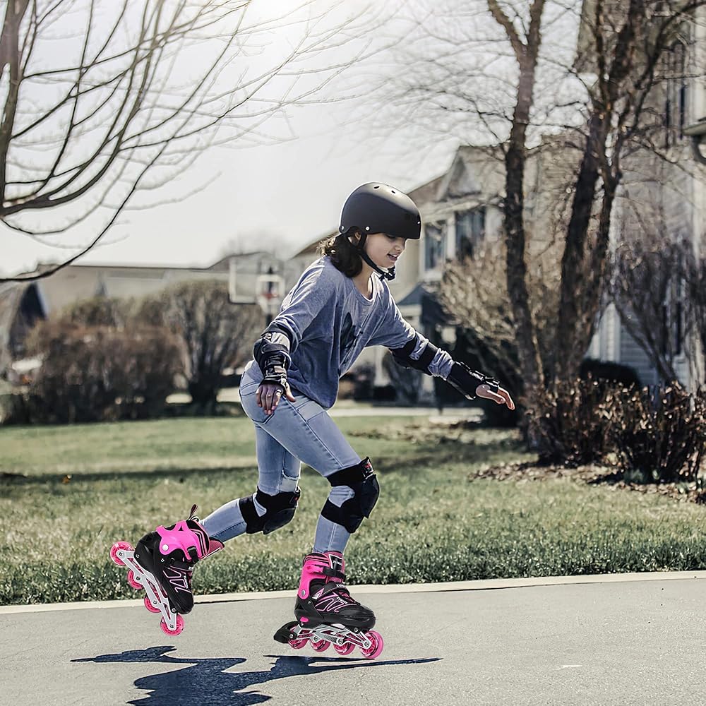 8 LIGHT UP WHEELS inline skates - Our inline skates for boys and girls outdoor come with four illuminating wheels that lights up automatically when you start to skate. The lights are powered by wheels rolling and never need replacement batteries! Premium performance and special light up bonus, totally worth the price!