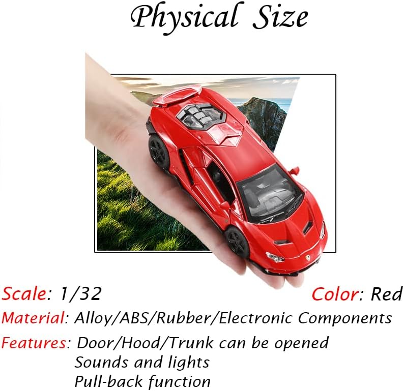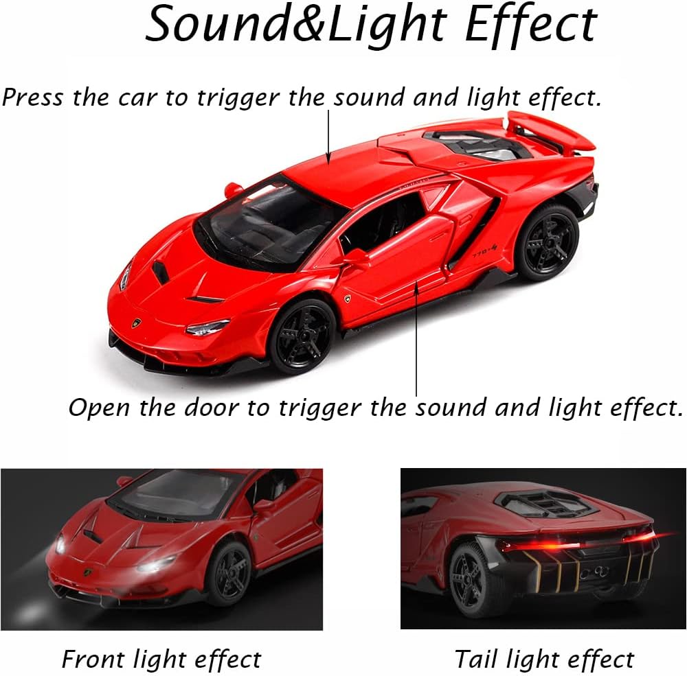 Alloy Collectible Red Lamborghini Car Toy Pull Back Vehicles Diecast Cars Model with Light & Sound