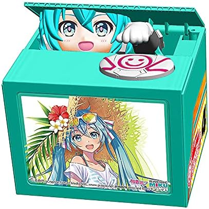 The third set of talking and moving Racing Miku coin banks, this time featuring En Morikura's Racing Miku 2021 Ver.! Place a coin down and Racing Miku will peek out from the box and take your coin! She'll say all kinds of phrases or even sing as she moves her hand to take your coin!