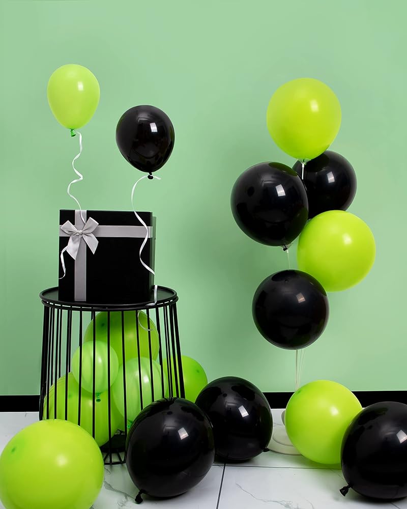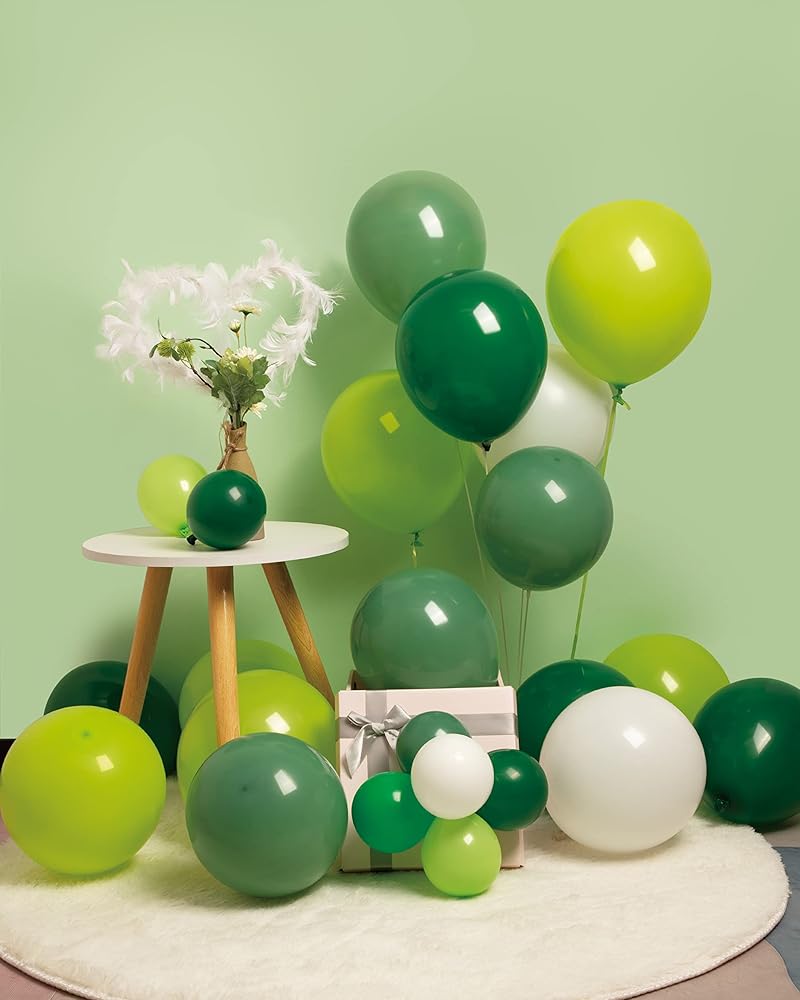 بالونات سهلة الاستخدام وتدوم طويلاً: هذه البالونات ذات اللون الأخضر الليموني بأحجام مختلفة مجهزة بمرونة كافية بحيث يمكن نفخها بالهواء أو الهيليوم بسهولة. تدوم حوالي يوم إلى يومين عندما يتم نفخ بالونات عيد الميلاد بواسطة مضخة هواء و3-6 ساعات عند ملئها بالهيليوم في بالونات الحفلات. عدد البالونات المتطابقة جيدًا يخلق قوس إكليل استوائي مثالي.