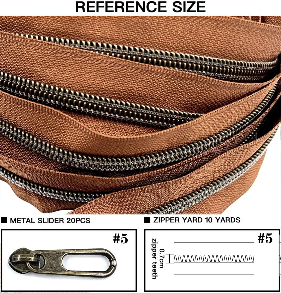 10 yards of nylon coil zipper + 20 pieces of metal zipper sliders (as the pictures show)
