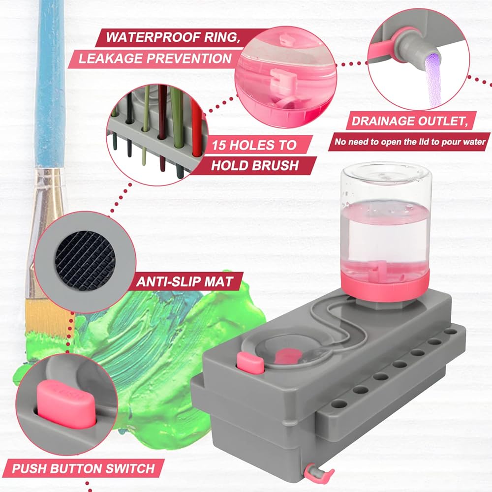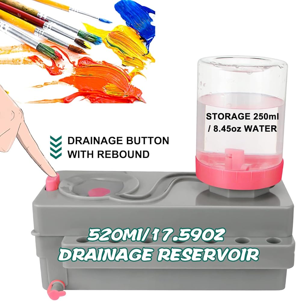 【Running Water Cycle Paint brush Rinser】Only pressing a button,you can replace dirty water with clean water,Allows you to focus more on drawing.Brush saver for cleanliness painters!