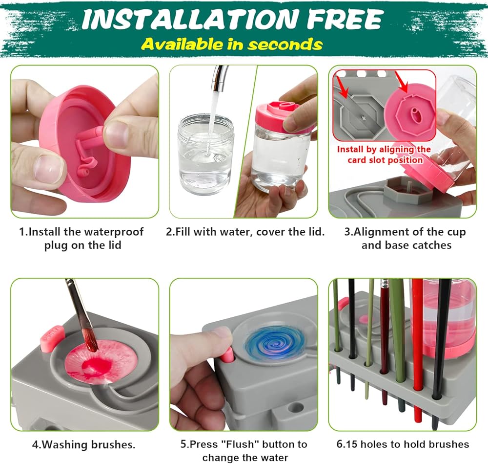 【Less Water Consumption】The brush cleaner only requires a small amount of water to clean the brush,effectively saving water.