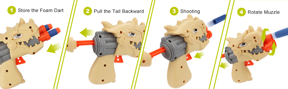 ➤【Realistic Shooting Game Experience】- The lights are accompanied by realistic dinosaur roar sounds, giving children a realistic dinosaur world gameplay experience. The magnetic dinosaur target is divided into 2 modes, static mode and 360° rotation mode, which is controlled by ON/OFF switch to let kids experience different levels of shooting game challenges.