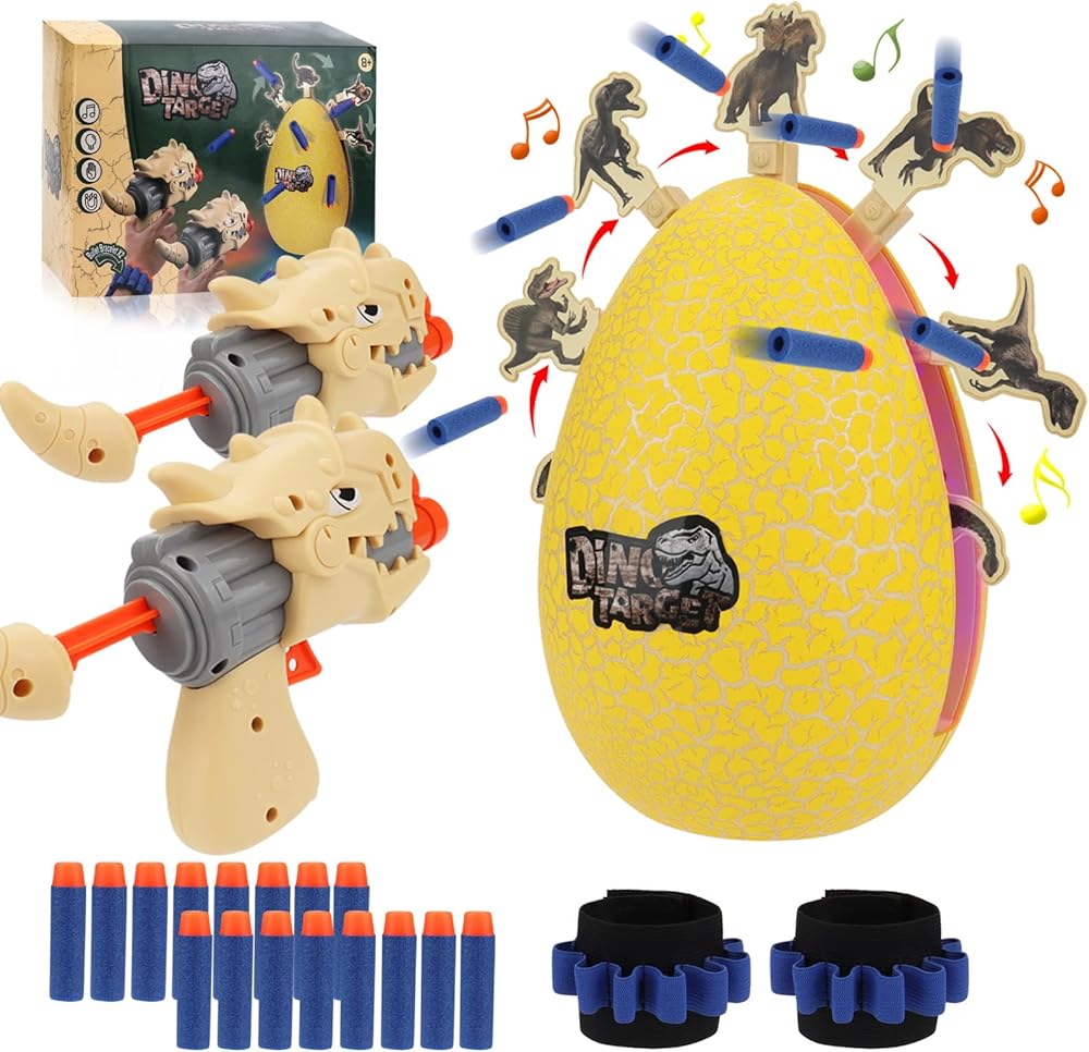 Shooting Game Toys for Kids, Electric Dinosaur Egg Shooting Toy with Light & Sound 8 Dinosaur Targets 2 Toy Guns 16 Foam Darts for Age 5 6 7 8 9 10+ Years Old, Ideal Gift for Boys Girls