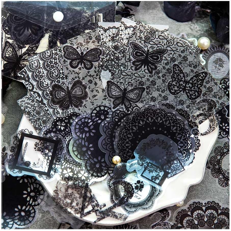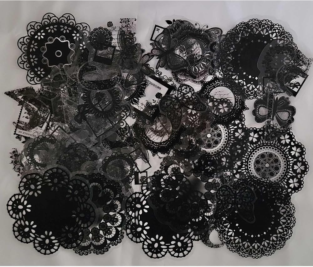 Vilikya 110pcs Black Lace Stickers for Scrapbooking Supplies, Aesthetic Doilies Butterfly Stickers for Journaling Embellishment, Vintage Flower Lace Scrapbook Paper for Junk Journal Ephemera