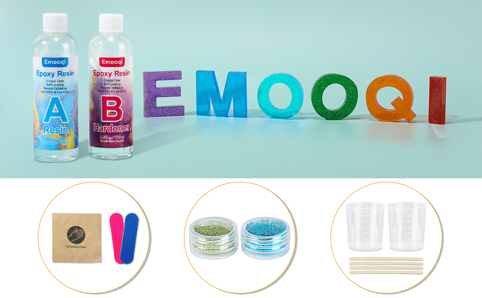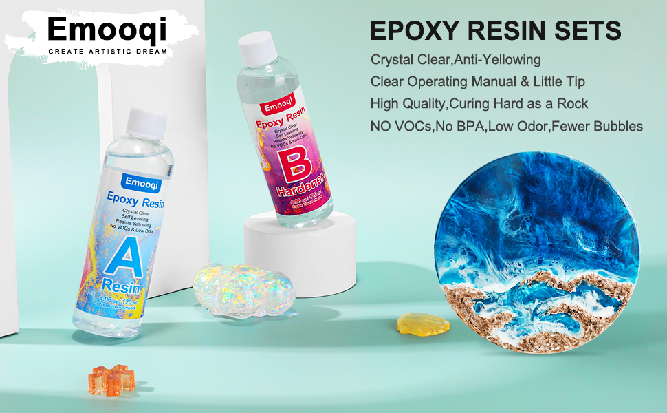 Infinite Possibilities: We have conducted rigorous testing to ensure that Emooqi epoxy resin is perfectly matched with other hand-made pigments. Emooqi resin set is very suitable for all casting, painting and art projects, including resin art, resin jewelry, paint art/acrylic casting painting, painting, coasters, table tops, glasses, wooden blocks, crafts and more.