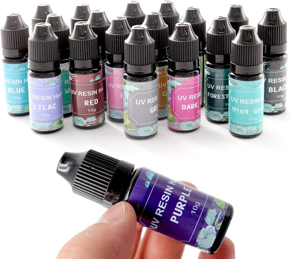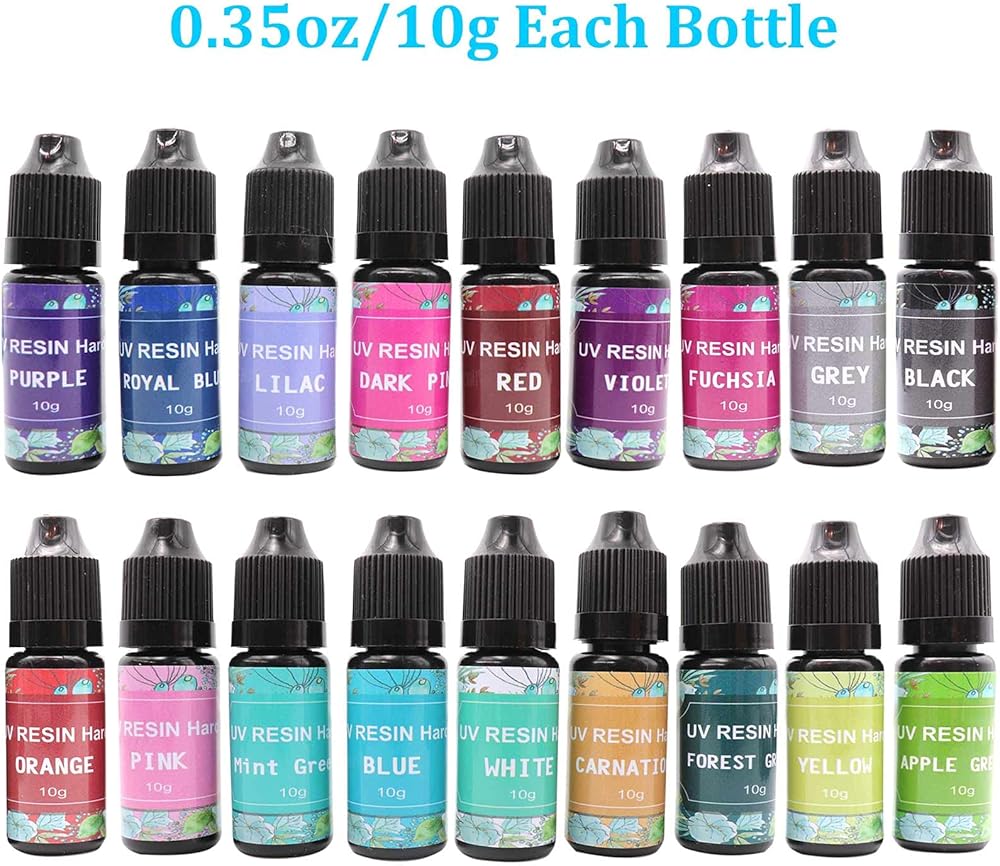 18 لونًا من QIAO QIAO DIY الملونة للأشعة فوق البنفسجية الراتنج الصلب لصنع الحرف الصغيرة، الراتنج للأشعة فوق البنفسجية الملونة لالمعلقات أقراط قلادة صنع المجوهرات 0.35 أوقية/10 جرام لكل زجاجة