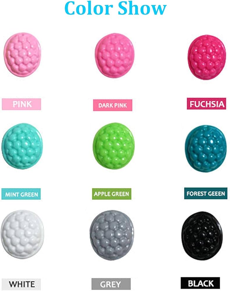 بنفسجي، بنفسجي، أرجواني، فوشيا، وردي، وردي غامق، أخضر نعناع، أخضر داكن، أخضر تفاح، قرنفل (مشمش)، برتقالي، أزرق، أزرق ملكي، رمادي، أسود، أبيض، أحمر، أصفر.