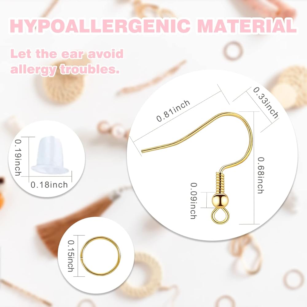 Package contents: 120pcs gold earring hooks with 120pcs jump rings and 120pcs silicone ear backs,can well meet your production needs.