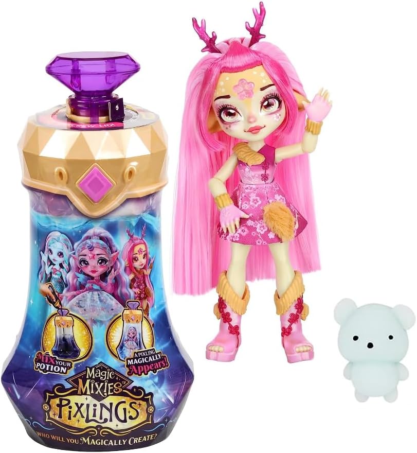 Mix your potion and a Pixling doll will magically appear! Add the magical ingredients and watch as your elixir becomes a deep blue color inside the bottle, then turn and press down on the Crystal Gem topper…
