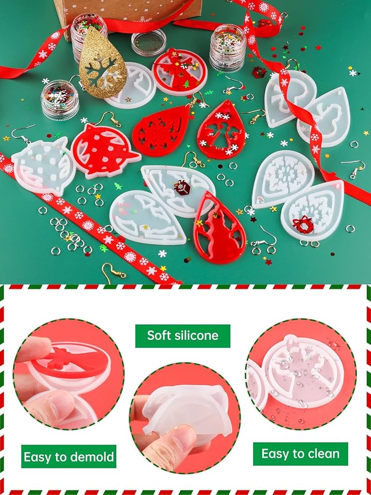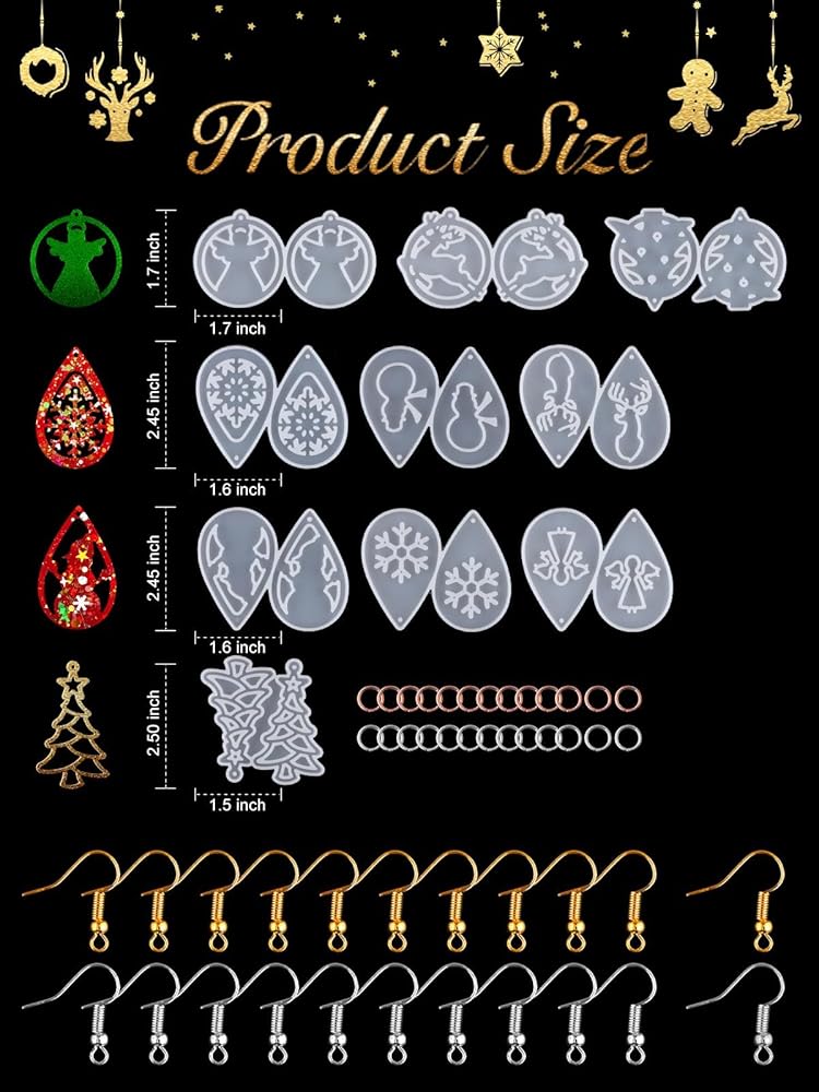 These earring fondant molds have different patterns, such as Christmas trees, snowmen, snowflakes, elk, etc., which are all classic Christmas elements. There are also multiple accessories, ear hooks, and open loops. You can make it with your family or friends, which will not only have a lot of fun, but also leave good memories.