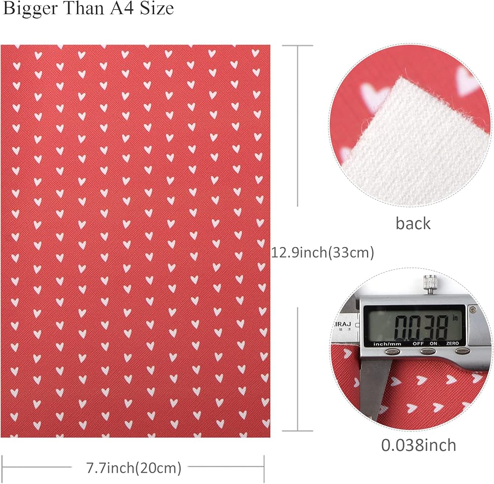 Assorted Materials:the package includes 2pcs rainbow pattern faux leather fabric sheets,2pcs love hearts pattern faux leather fabric,1pc stripe pattern faux leather sheet,5pcs in total for one set,enough for your different requests,ships flat for your inconvenience,so as no crease on the sheets