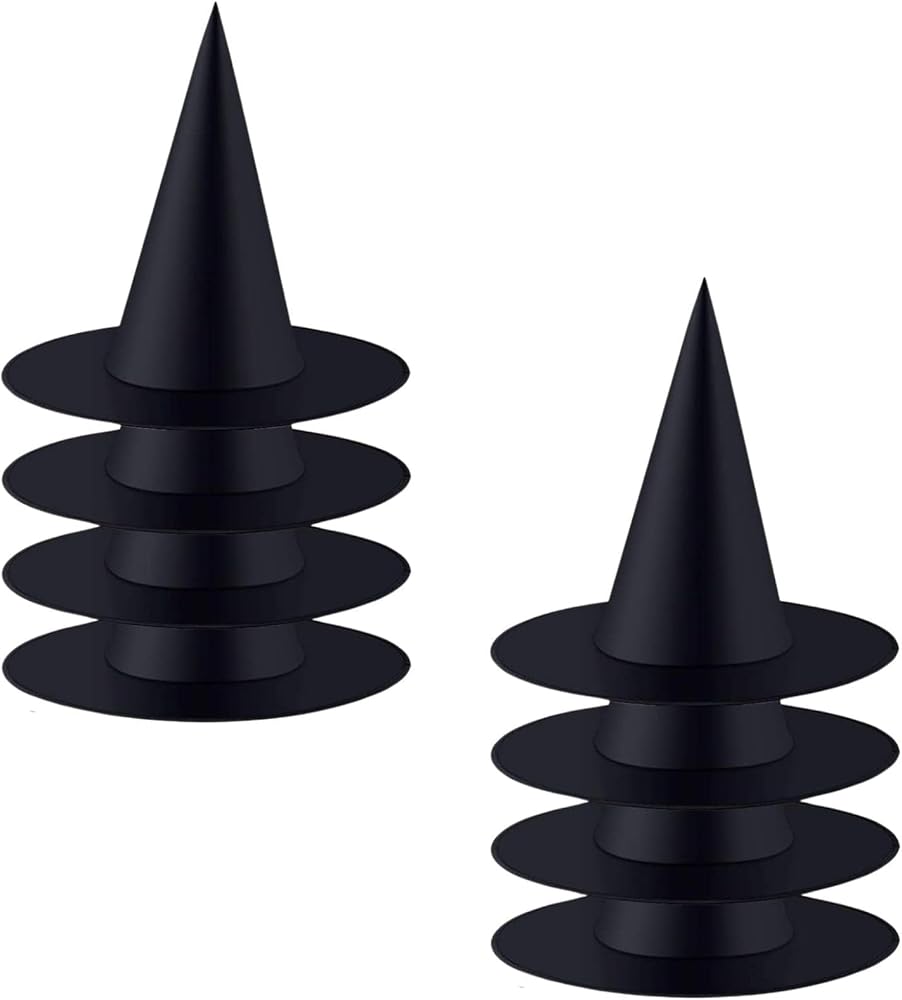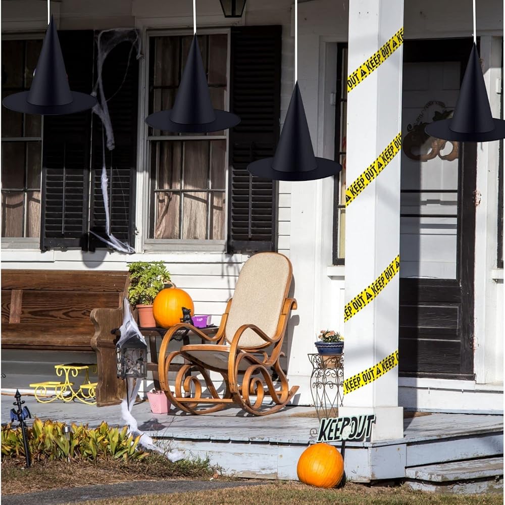 【Witch Party Decor】: Perfect for Halloween party decoration,most atmosphere for scary scenes,decorative use in Halloween party,Place on back yards,doors,windows,overhangs,branch,gates and so on.The witch hat is an excellent decoration for door,rooms and courtyards, with a beautiful appearance.Can be used for parties, carnivals, Halloween, masquerade, role playing, etc