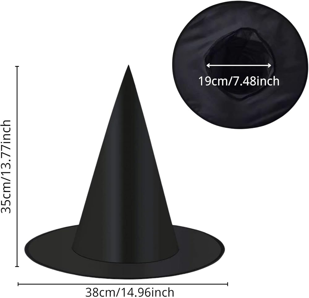 【Package content&Hat Size】:It contains 8pack halloween costume witch hat.The Halloween witch cap height is approx 13.77 inches, the inner diameter is approx 7.48 inches, the outer diameter is approx 14.96inches, suitable for most people and lightweight.