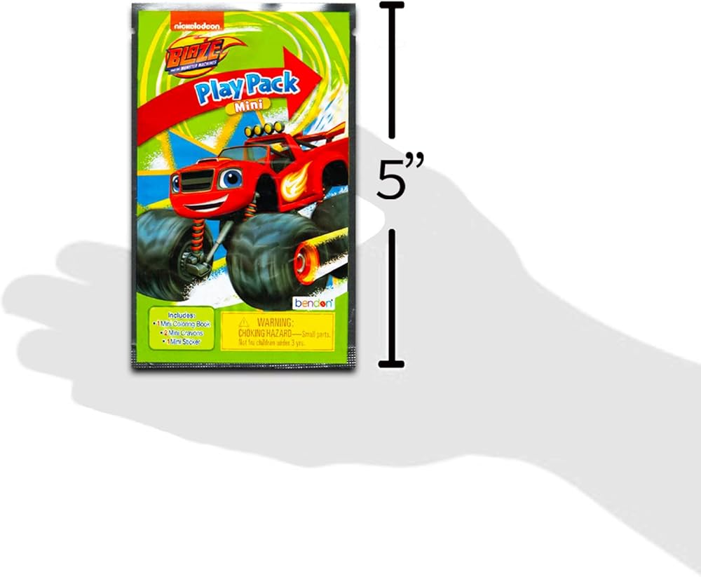 Blaze and the Monster Machines Mini Party Favors Set for Kids - Bundle with 24 Mini Grab n Go Play Packs with Coloring Pages, Stickers and More (Blaze and the Monster Machines Birthday Party Supplies). This Blaze and the Monster Machines party supplies set features 24 mini Grab n Go Play Packs which each include a miniature coloring book, stickers, and coloring utensils. Sure to be a delight with all kids, Blaze and the Monster Machines Play Packs are great to use as party favors, party supplies, goodie bag fillers, non-candy Halloween treats, trick or treat goodies, as part of a gift set and more. These Blaze and the Monster Machines Grab n Go Play Packs will pair perfectly alongside any other monster truck merchandise. The perfect size for gift bags, loot bags, and treat bags. Officially licensed Blaze and the Monster Machines party favors are sure to be a hit with fans of all ages, boys and girls alike.