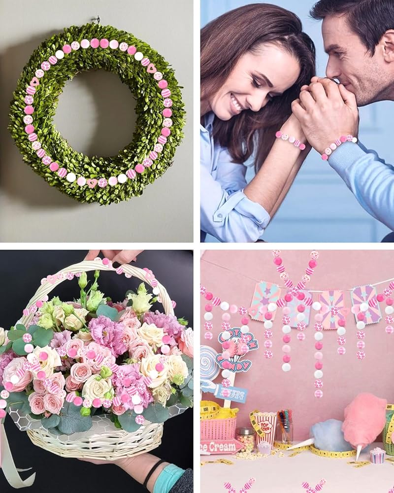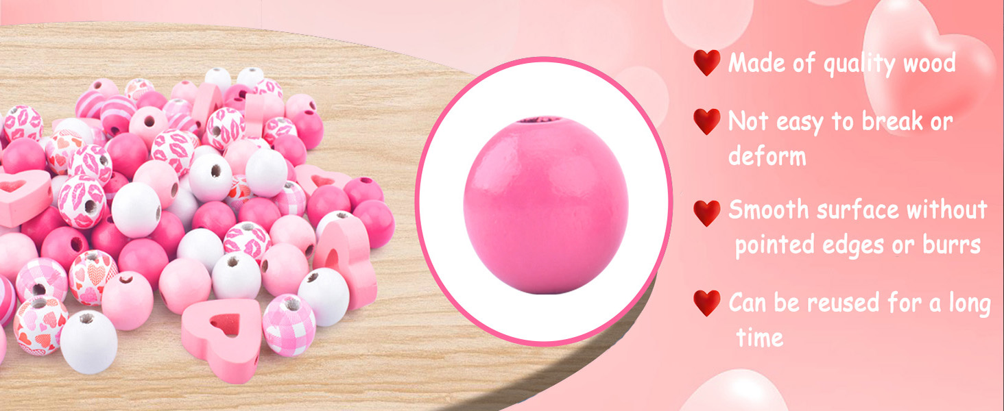 💕【Quality Material】-These Valentine's Day craft beads are made of high-quality wood materials, durable, not easy to break deformation, smooth surface, no sharp edges or burrs, rich color, not easy to fade, can be preserved and used for a long time.
