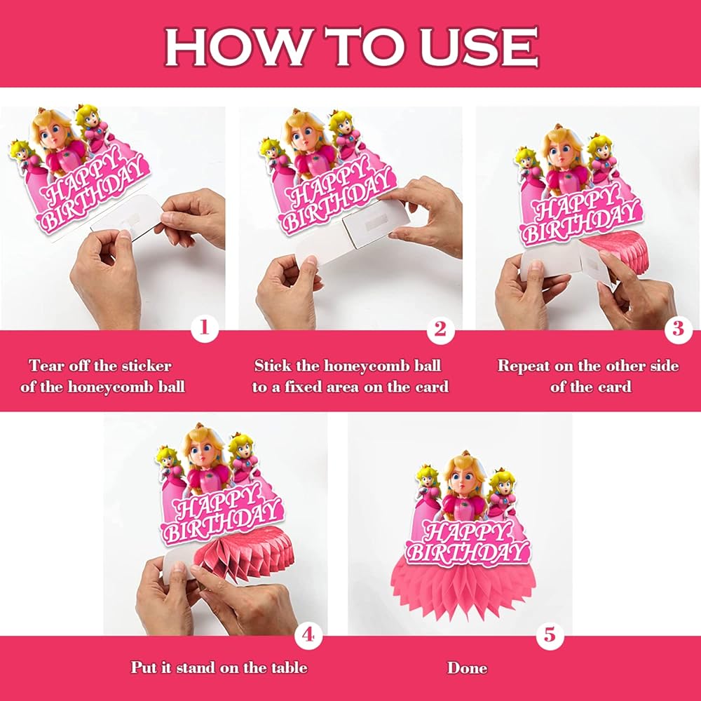 simple to assemble: these princess party decorations honeycomb centerpieces can be assembled according to the pictures in just a few seconds. you just need to tear off the glue dot sticker on the back of the honeycomb, unfold the honeycomb, and paste the cardstock pattern, repeat on the other side of the card, then you can get a cute honeycomb decoration. use the table centerpiece to put them in your favorite display area to easily decorate your party, saving time and effort