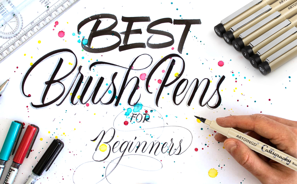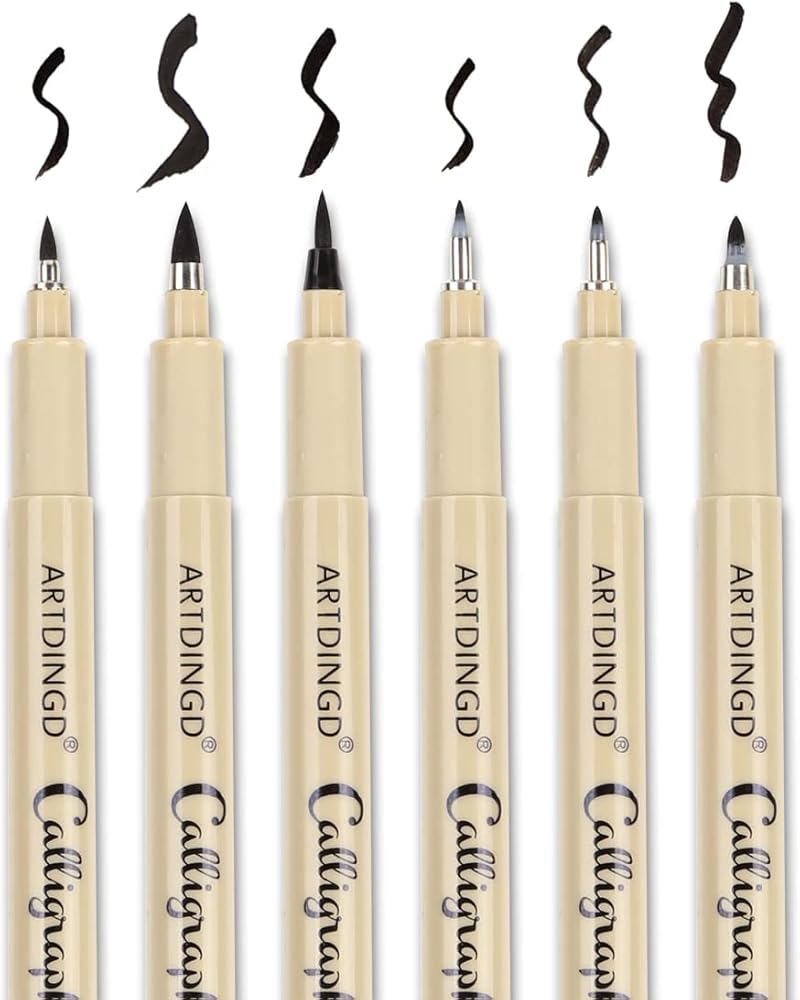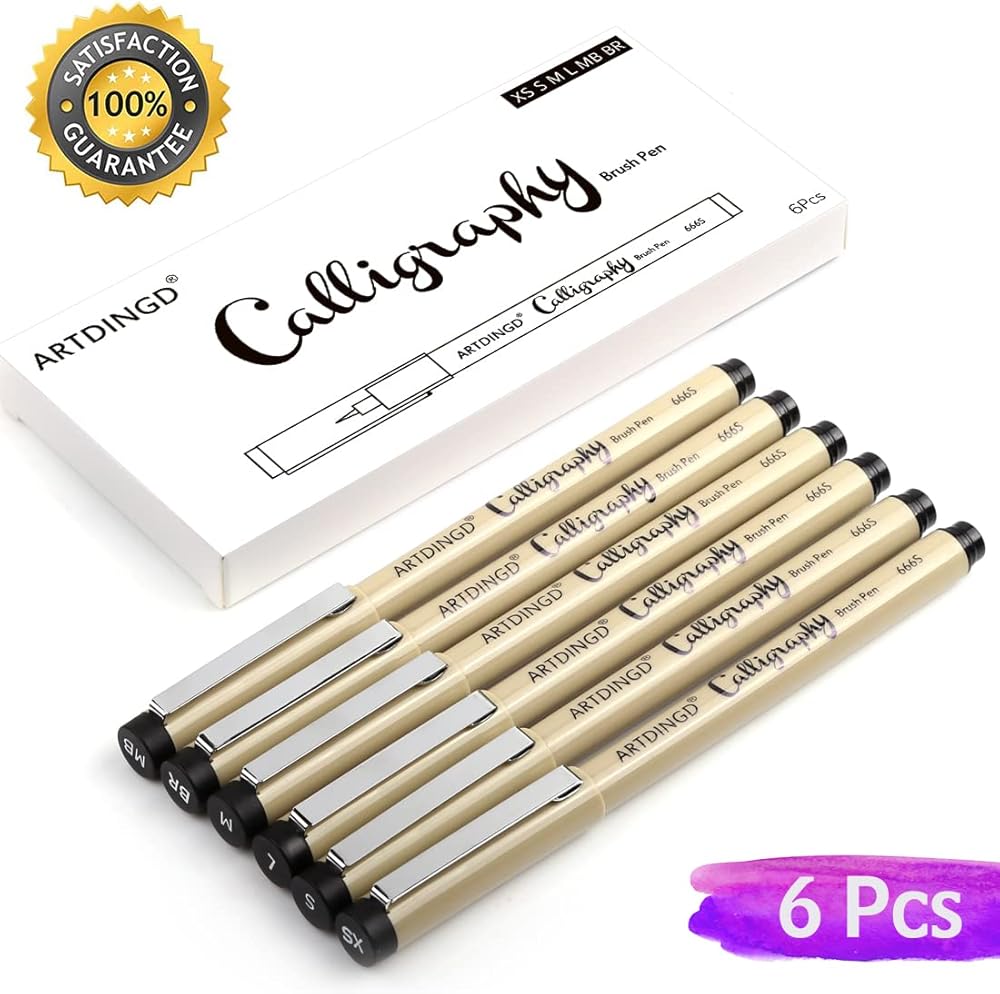 ARTDINGD Calligraphy Brush Pens, Hand Lettering Pens, Pack of 6 Brush Markers Set, Soft and Hard Tip for Beginners Writing, Art Drawings, Water Color Illustrations, Journaling, Black Ink