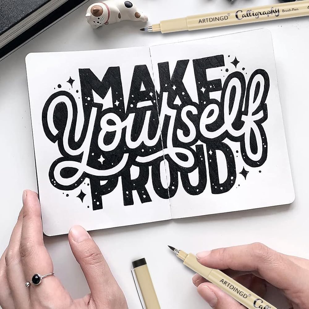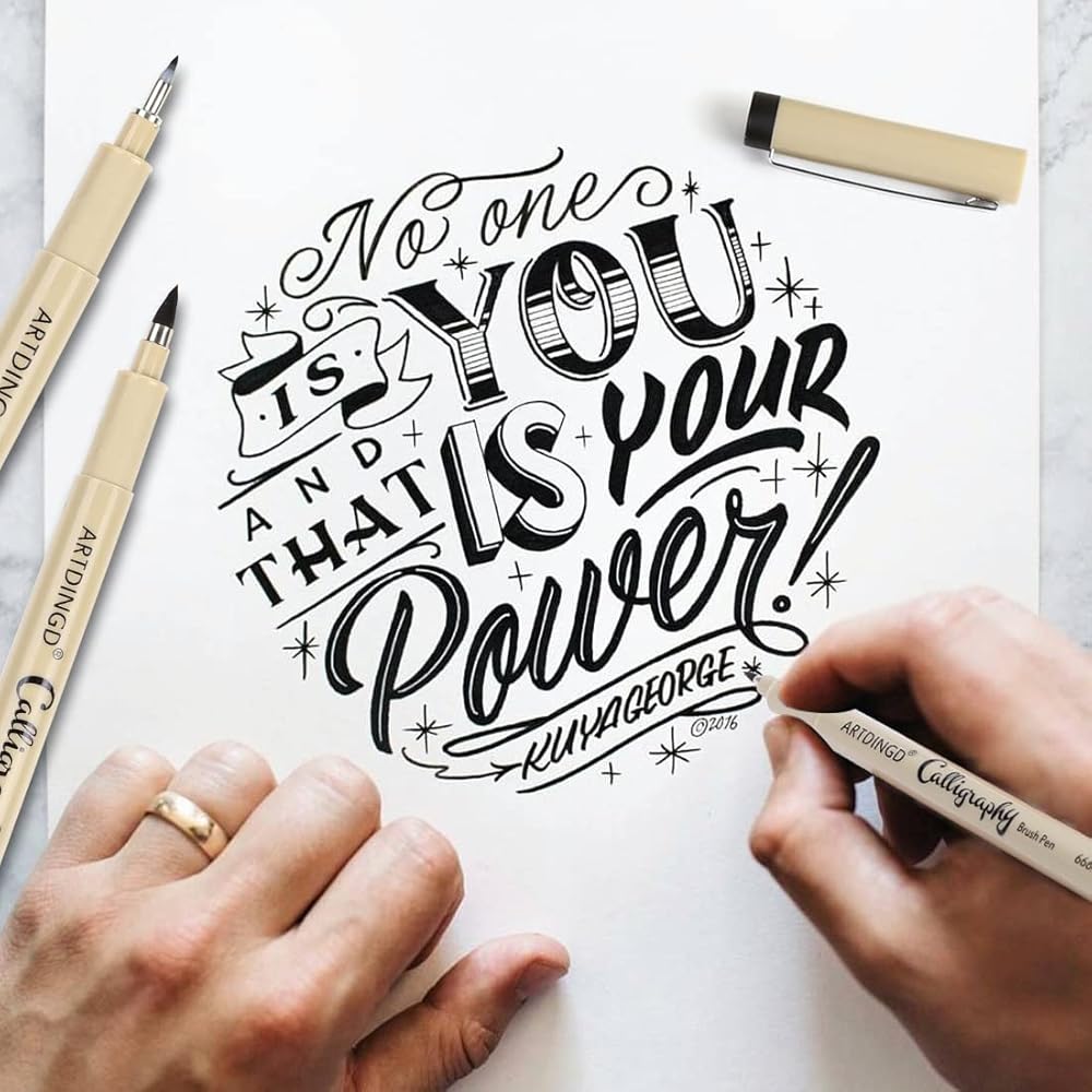 Wide Applications: Hand Lettering Calligraphy Pens are great for calligraphy practicing, writing, hand lettering, art drawings, signature, design, outlining, doodling, drawing, sketch, graphic, coloring, greetings card, invitations, Illustration, journaling and artwork, design The figure includes artists fine - drawings and coloring small complex patterns, etc.