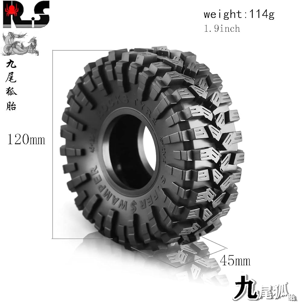 💎💎【Scale Configuration】This 1.9 Crawler tires are 4.72" tall x 1.77" wide for the perfect balance of Scale looks and performance.