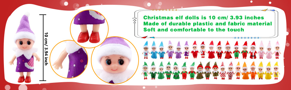 Size details: these elf baby dolls are approximately 10 cm/ 3.93 inches tall, making them easy to carry, store or decorate. With their mini size for extra sophistication and cuteness, these adorable elf dolls are sure to be a hit with most children and adults alike. Whether you're looking for a great Christmas gift for your little one or a unique Christmas decoration for your home, these elf dolls are the ideal choice