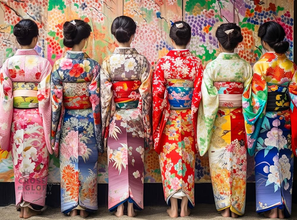 Dive into a world of intellectual stimulation and vibrant colors with the "Elegant Kimono Beauties", undoubtedly one of the best adult jigsaw puzzles from Cross & Glory. Order now and experience the fusion of art, culture, and cognitive workout in this delightful 1000 piece jigsaw puzzle.