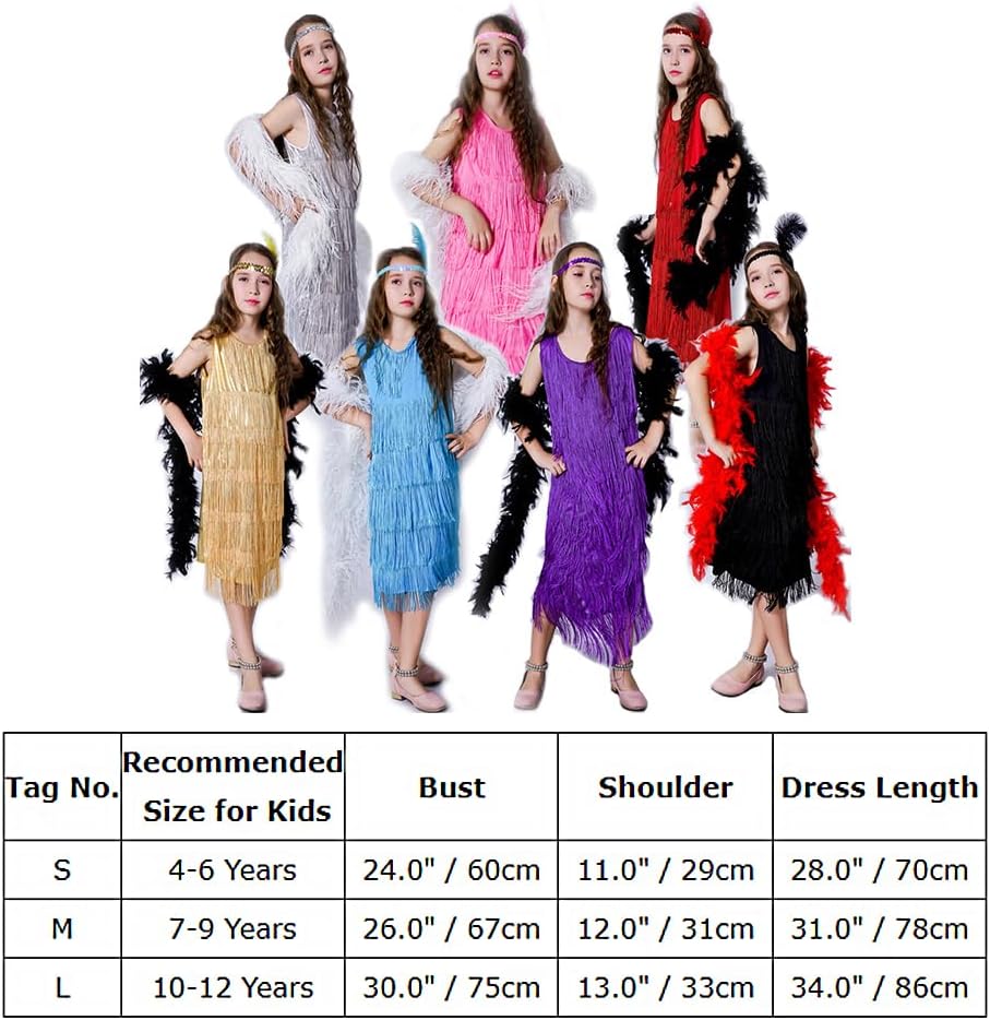 ✤ Size: 1920's sequin tassel flapper dress roaring 20s costumes for girls gatsby dress gold fringe dress, more than 7 colors for choose. 20's flapper dresses for kids, Fit 4-6 years, 7-9 years, 10-12 years girls. Please refer to the size chart image before order.