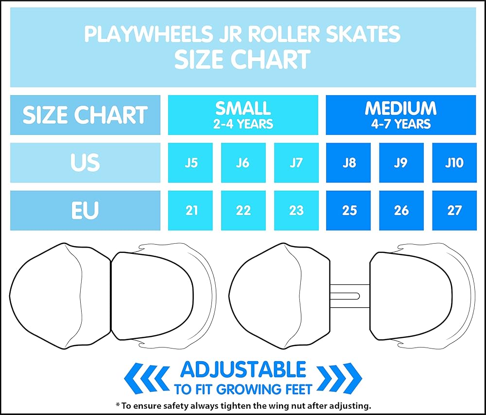 This roller skate and knee pad set has just what a Teenage Mutant Ninja Turtlesfan needs to get rolling! The PlayWheels Teenage Mutant Ninja Turtles Kids Roller Skates with Knee Pads are perfect for kids learning how to skate. This combination set comes with adjustable skates and durable, protective kneepads for superior safety. Fit and adjust for a variety of junior foot sizes with the convenient thumb screw - no tools required! These solid beginner skates also feature simple-to-use toe brakes for easy slowing and stopping. The sturdy plastic frame and strap buckles stand up to heavy use for long-lasting outdoor fun and action. The included knee pads use simple, straightforward hook and loop fasteners to adjust and secure for a perfect fit. With the stylish Teenage Mutant Ninja Turtles theme, this is one set of skates that kids will be proud to wear and show off to their friends! For ages 3-6 and supports up to 45 pounds.