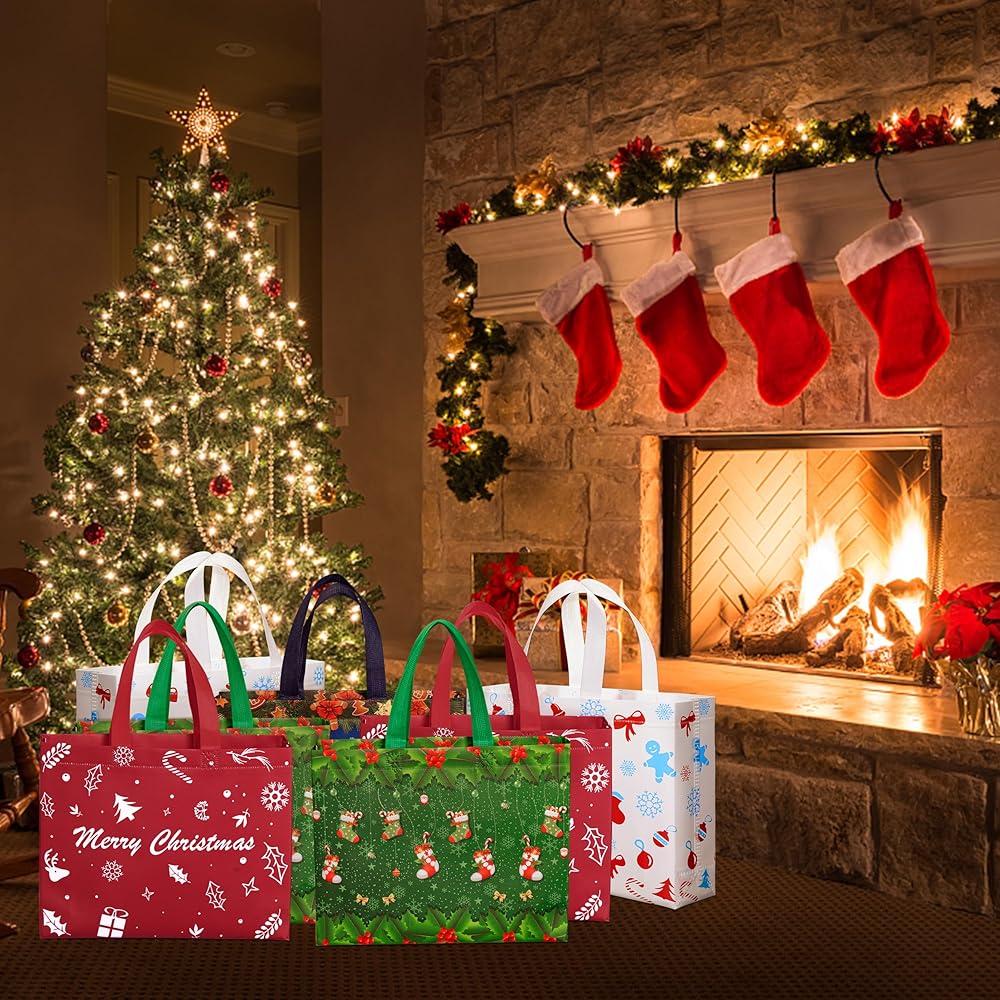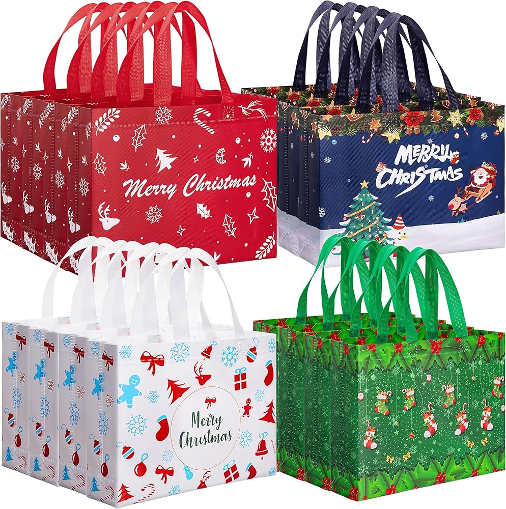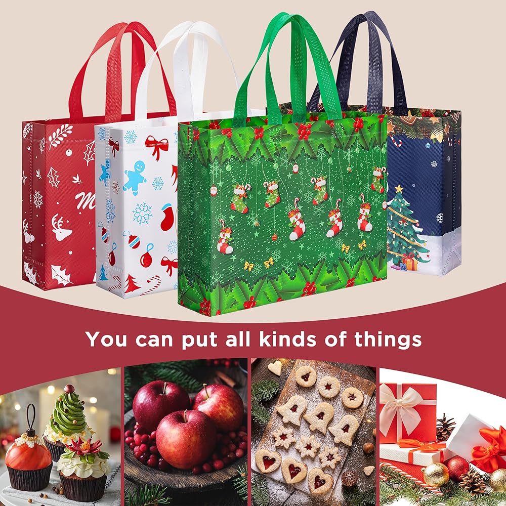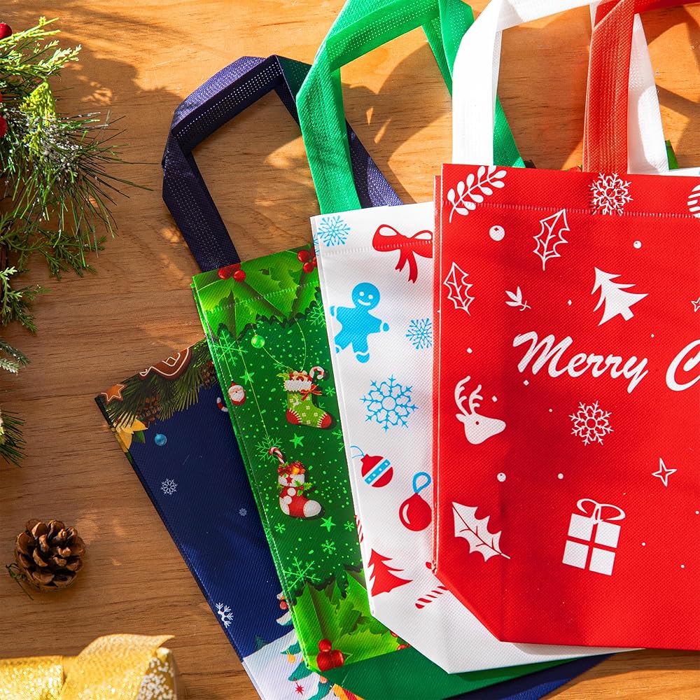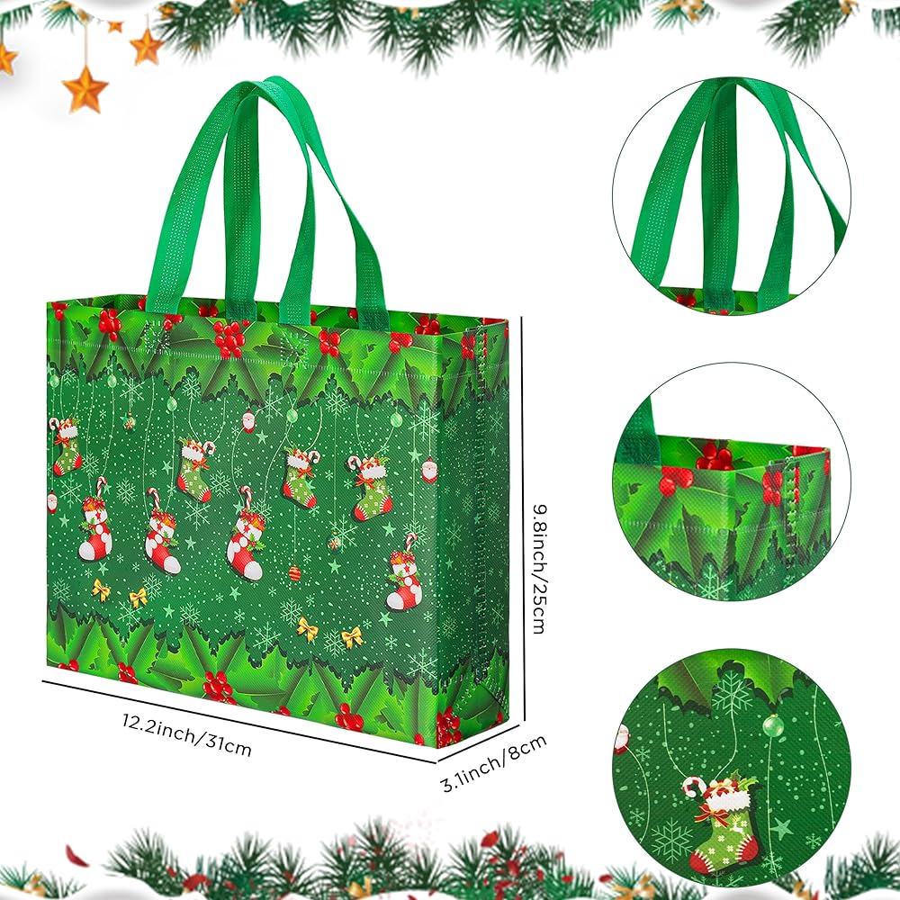 LARGE CAPACITY CHRISTMAS BAG: Measuring 12.2 inches x 9.8 inches x 3.1 inches (31 x 25 x 8 cm), these spacious Christmas tote bags provide ample space for Christmas gifts, are versatile and fit a variety of gift sizes, perfect for Christmas Great for parties, holiday gifts, wine bottle displays, grand gifts, friend gifts, or even hospitality gifts.