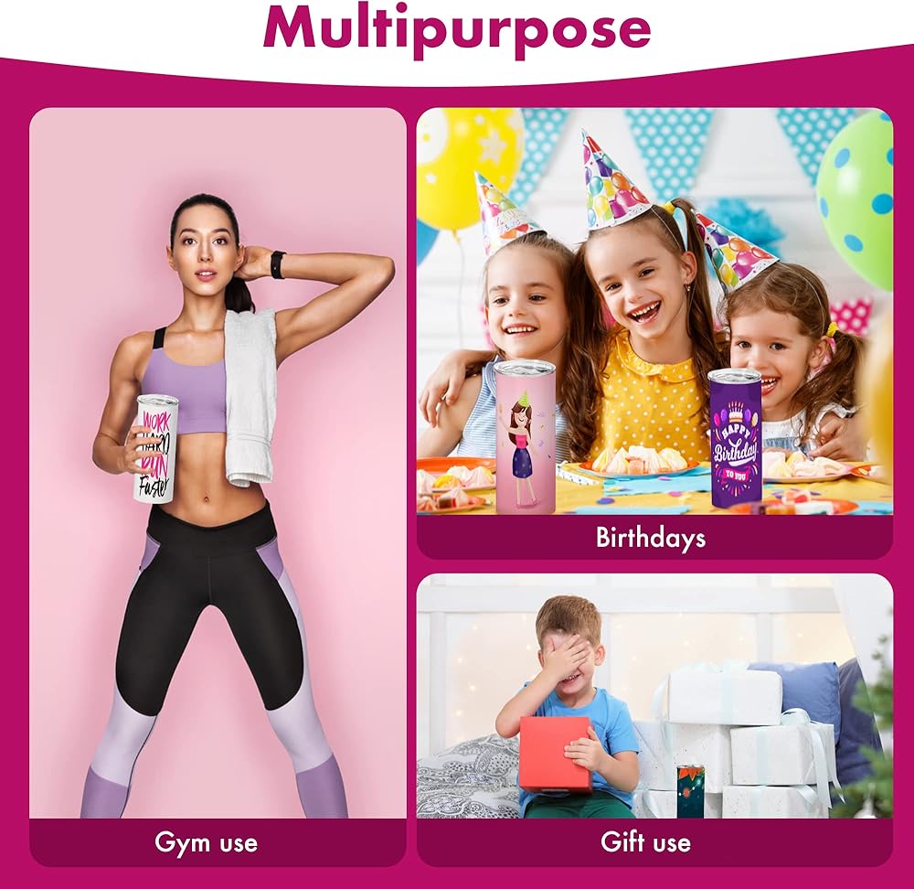 كل ما تحتاجه: مجموعة أكواب الفرن الفارغة لنقل الحرارة أو التسامي تتضمن 8 أكواب من الفولاذ المقاوم للصدأ عالية الجودة، و8 أغطية بلاستيكية تغلق منزلق، و8 قشات من الفولاذ المقاوم للصدأ مقاومة للانسكاب، و8 وسادات قاعدة من السيليكون غير قابلة للانزلاق، و8 فرش تنظيف معدنية، و8 علب هدايا بأقواس و8 أوراق تغليف قابلة للانكماش.