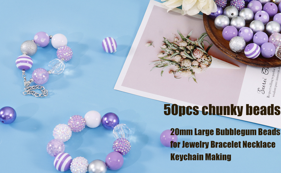 【You Will Get】:There are 50pcs chunky beads,56pcs tiny round spacers beads, 2pcs extender chains and 2pcs differt beading Wire.Consist of rhinestone beads, purple bubblegum beads and oval beads,enough styles to create original crafts, you can jewelry making,bracelets making, necklaces, keychain making.