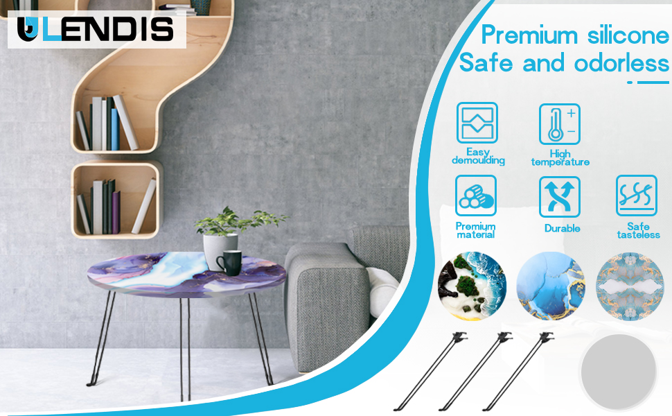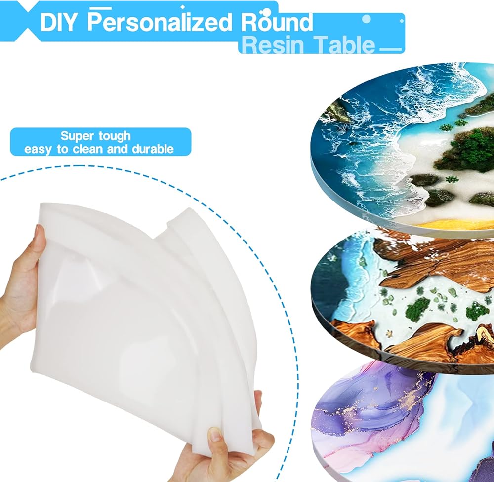 【Large Resin Desktop Molds】Package include 1pcs round large silicone molds is 19.7 inch in diameter, 1.33 inch in height, 3pcs foldable hairpin Legs height 12.6 inch. It have enough size to customize your own unique and shiny resin table, incorporate resin art into your daily life.