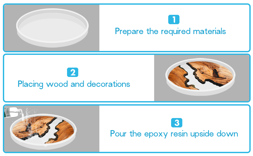 【Warm Tips】Due to the large size of the resin table top silicone mold, pay attention to pour the epoxy resin in layers during use avoid resin overheat issue, and keep away from open flames objects. Clean the mould with soapy water or warm water before and after use.