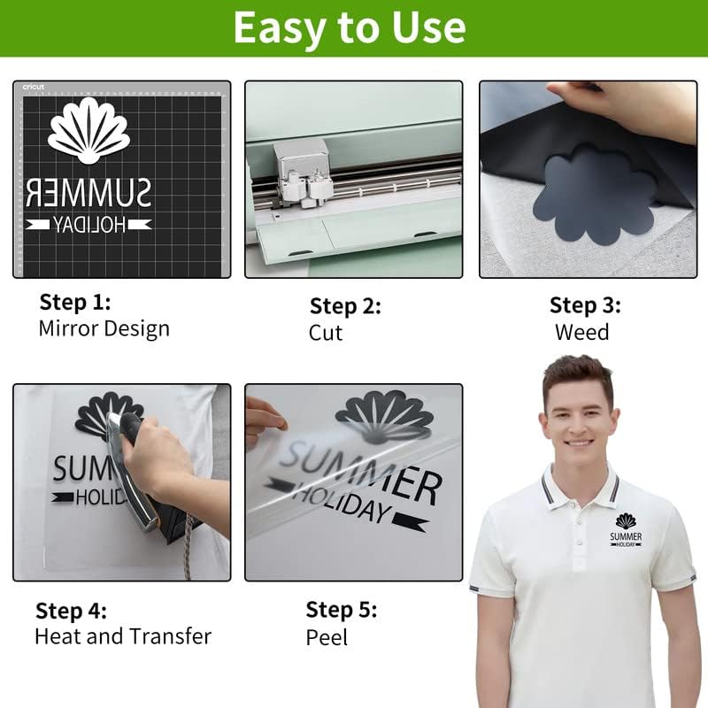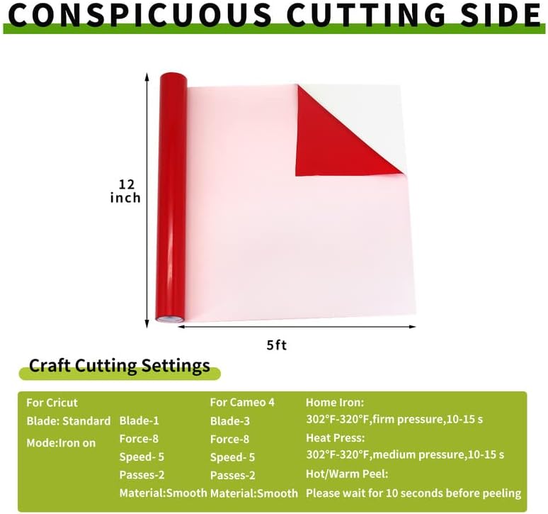 【EASY TO CUT & WEED & PRESS】 The PU vinyl heat transfer bundle is about 0.1mm thick, soft, flexible and easy to cut. It is suitable for cutting small letters, the cutting line behind htv vinyl is clear, making it easier for you to weed. Iron on vinyl is easy to use and the transfer pattern is clear and beautiful. Please read the instruction manual for the specific operation.