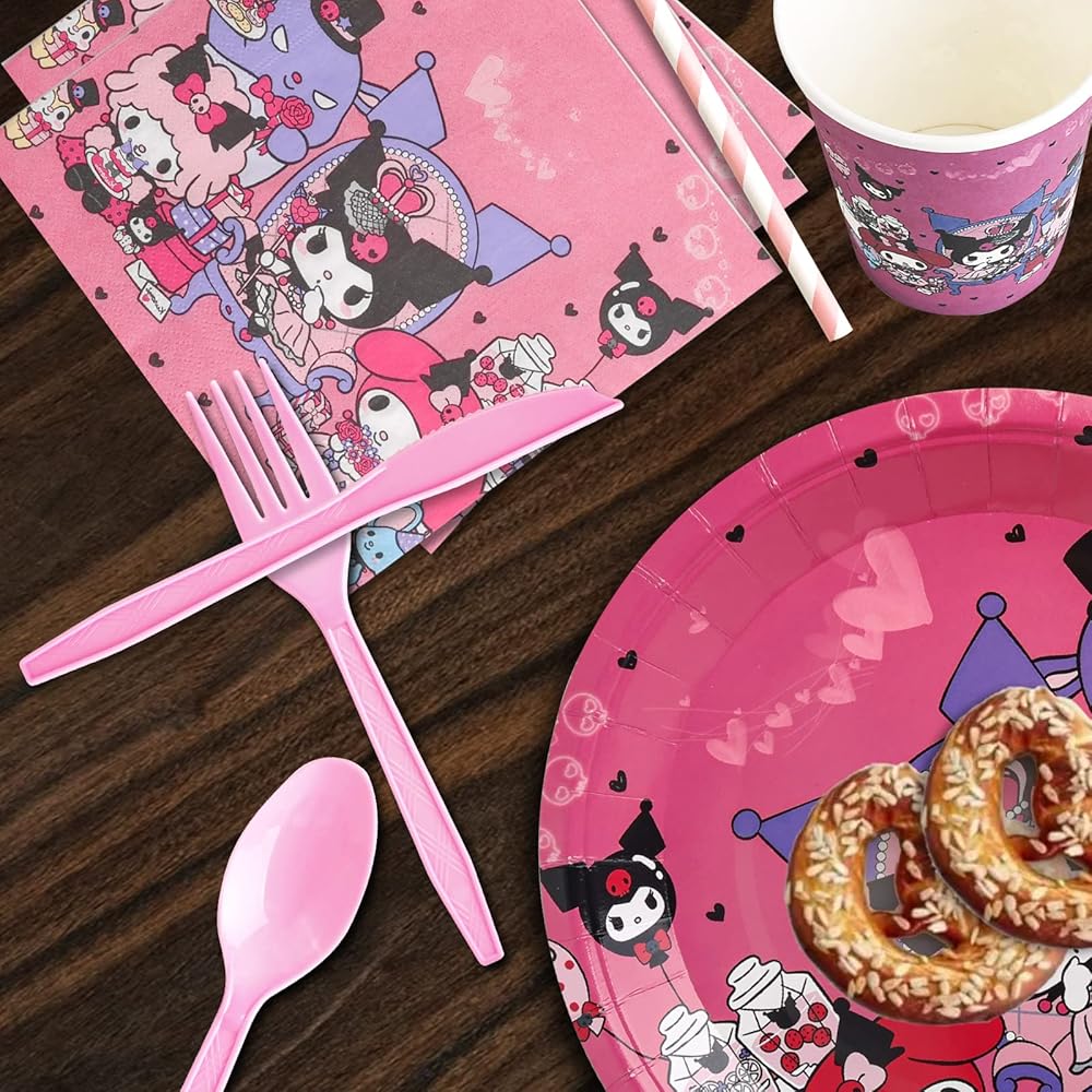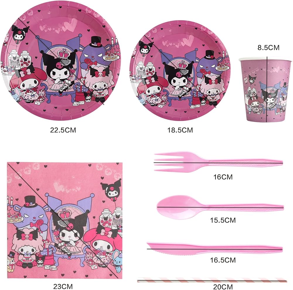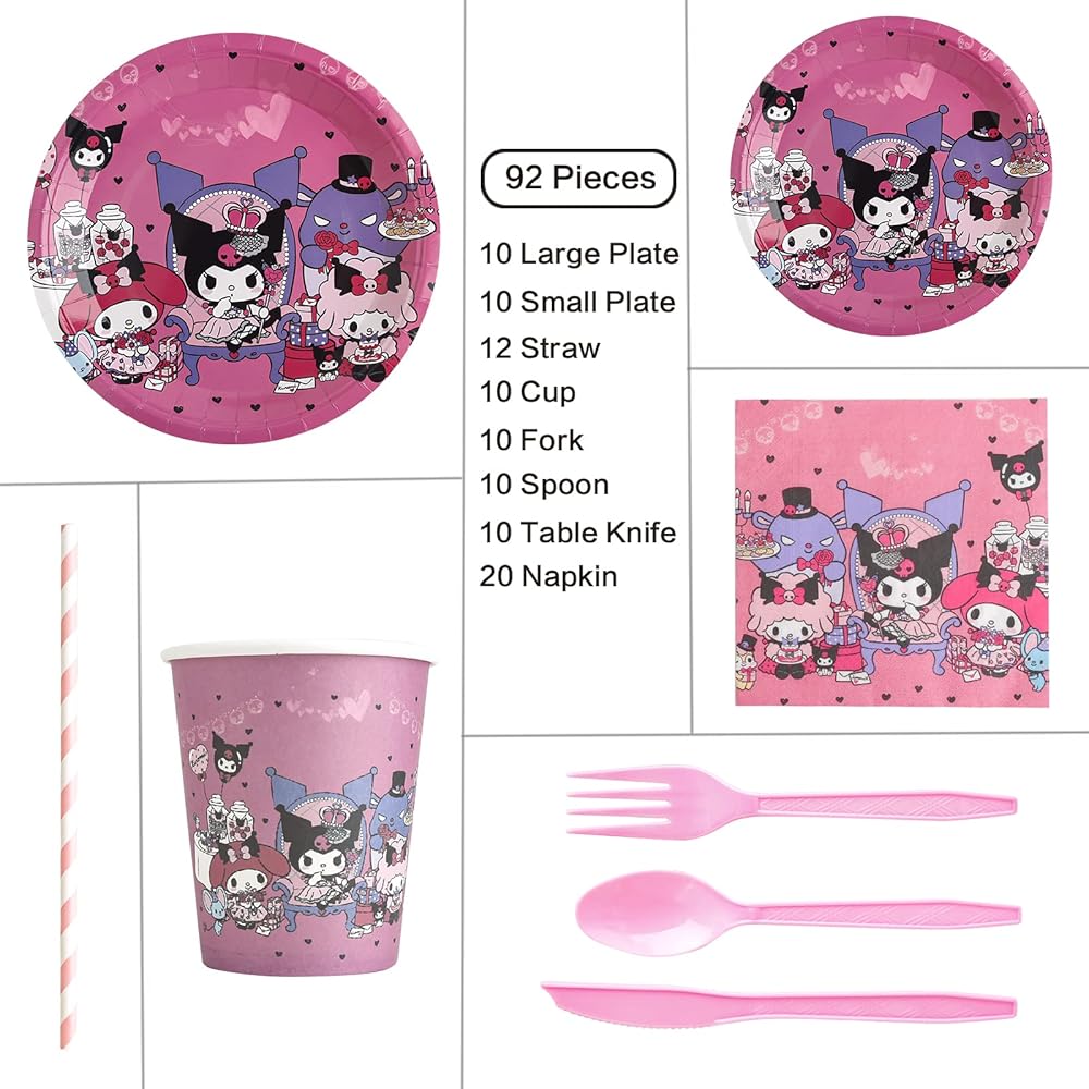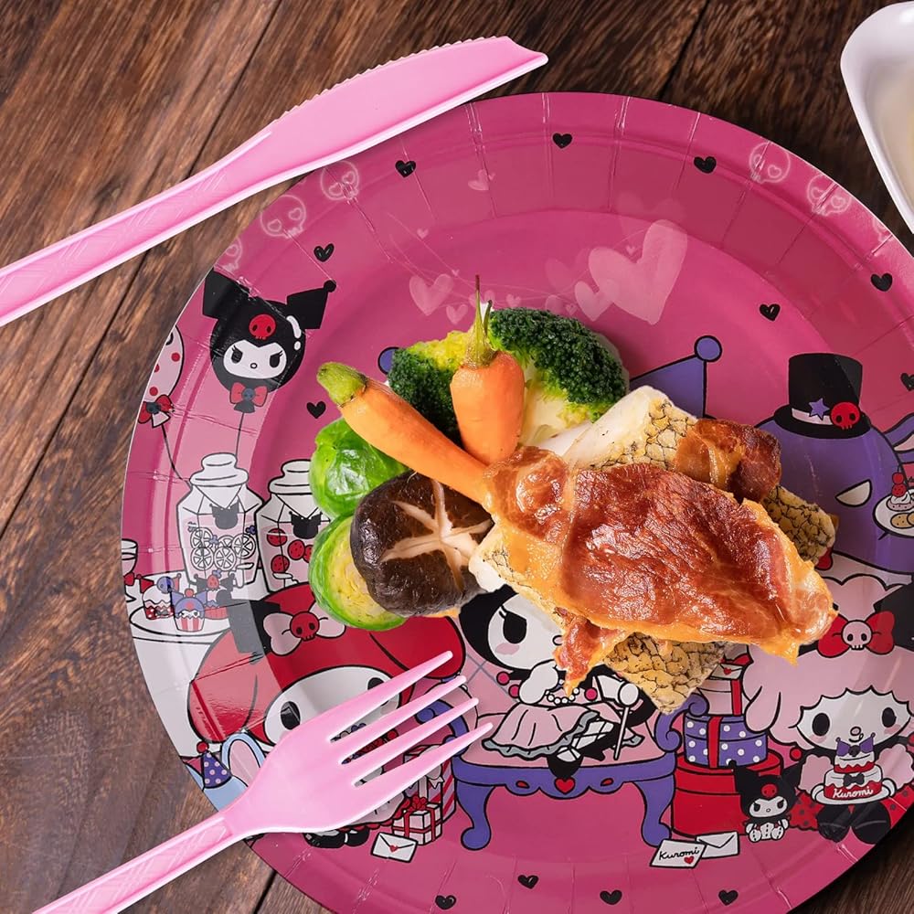 【Product List】:20 napkins, 10 spoons, forks, knives, 10 cups, 10 7" plates, 10 9" plates,12 straw,Cute kawaii birthday cutlery is made of high quality plastic. You can be confident in using it.