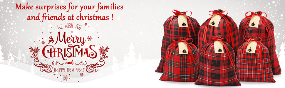 EASY TO USE - Christmas drawstring bags are equipped with a red ribbon which smooth and easy to knot. So that you can tie this gift bag with a bow to keep your items safe, clean and beautiful.