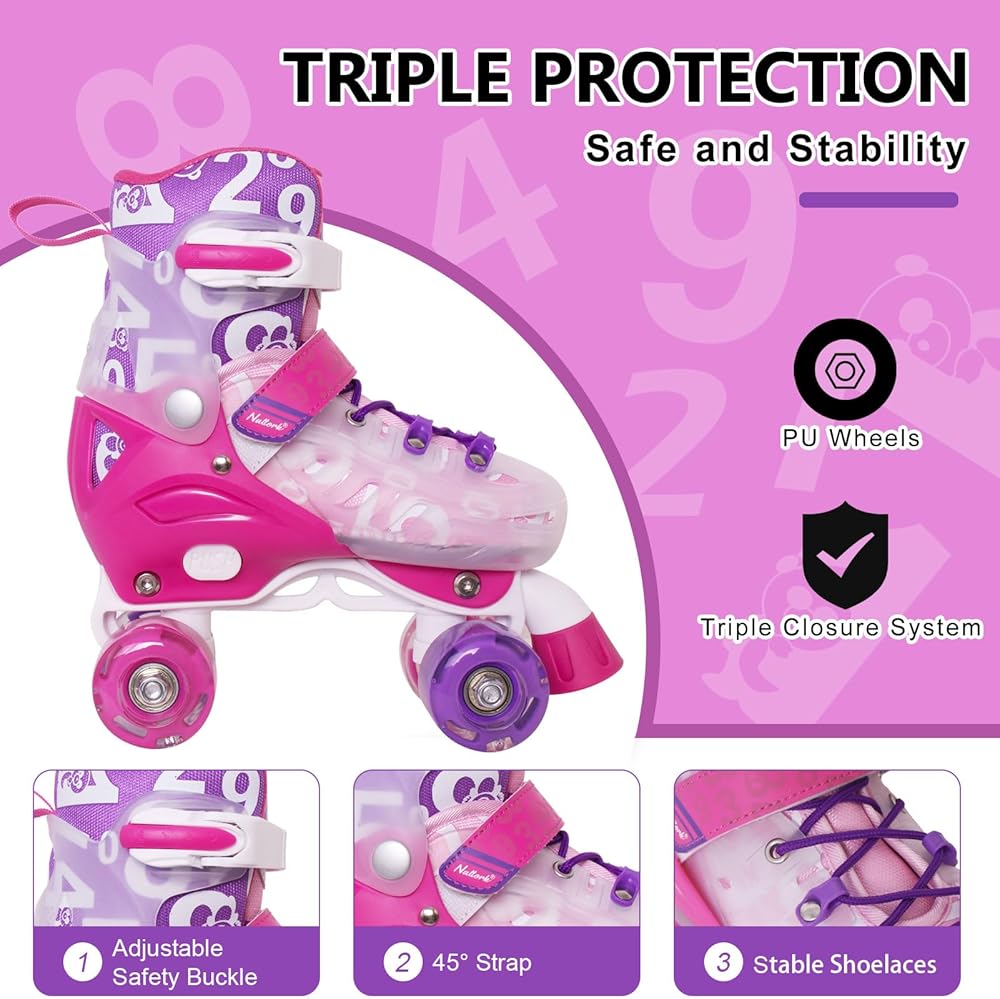 🎁PERFECT BIRTHDAY/CHRISTMAS GIFT: Nattork roller skates can be a perfect birthday/Christmas gift for your kids, grandchild or nieces and nephews. The kids will have a happy childhood. Affordable for beginners, we aim to provide a high quality experience.