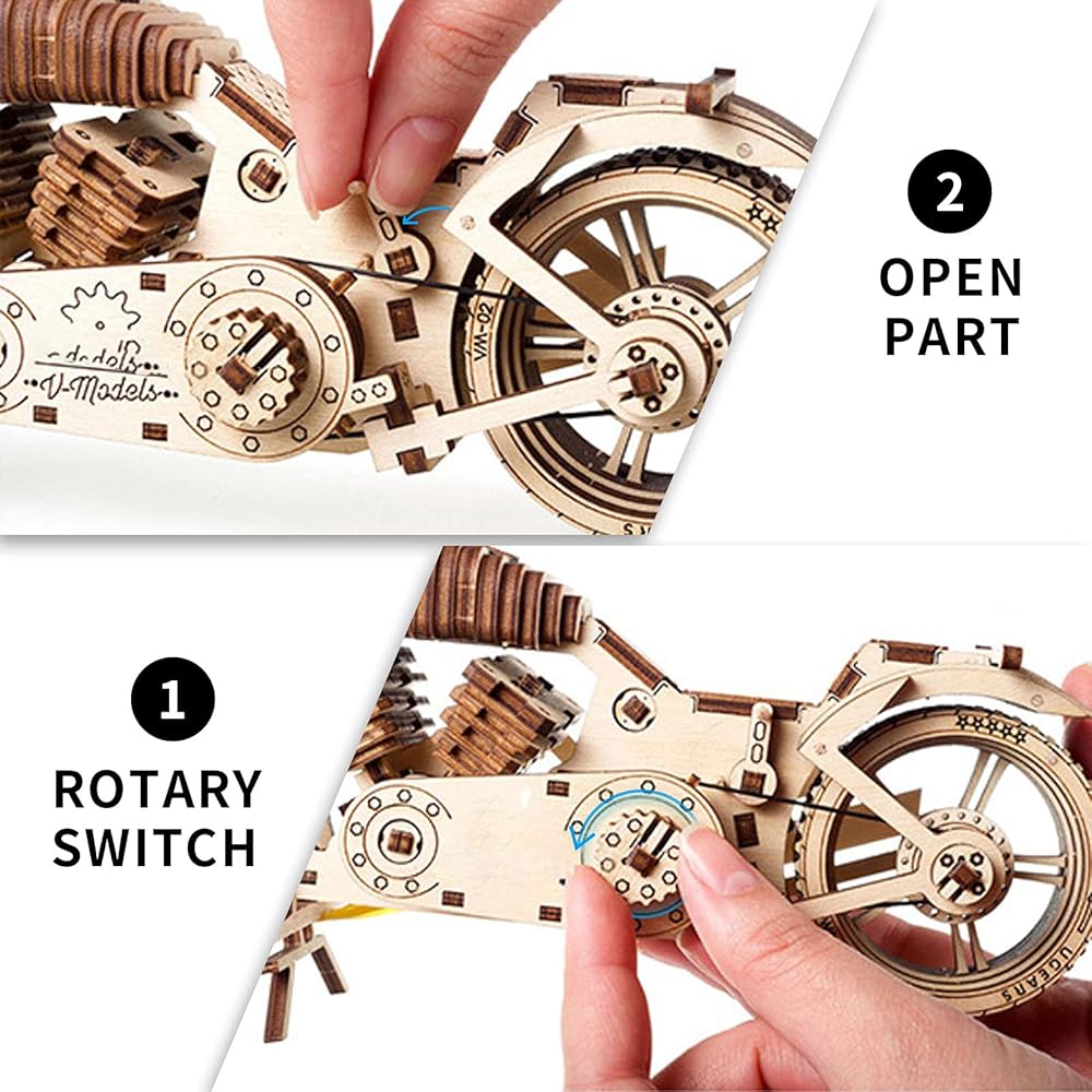 3D Wooden Puzzle,Motorbike DIY Kit Wooden Mechanical Motorcycle Project 3D Puzzle Toy ,Jigsaw Puzzle for Good Family Time with Kids Teens and Adults Refined Gift Idea for Vehicle Passionate