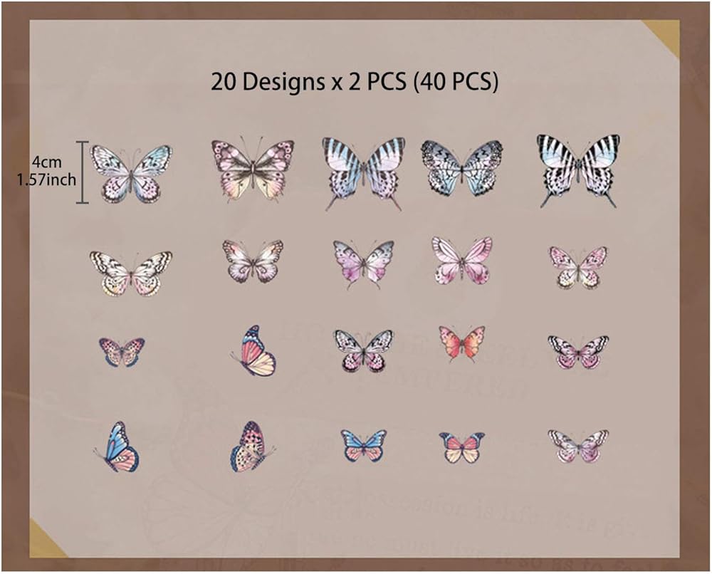 تحتوي العبوة على 40 قطعة من ملصقات الفراشات، ملونة وجميلة المظهر. تصميم مبتكر، يمكنك استخدام خيالك للصق على صندوق أقلام الرصاص والهاتف والكمبيوتر والمخططات والنوت بوك والمذكرات وما إلى ذلك.