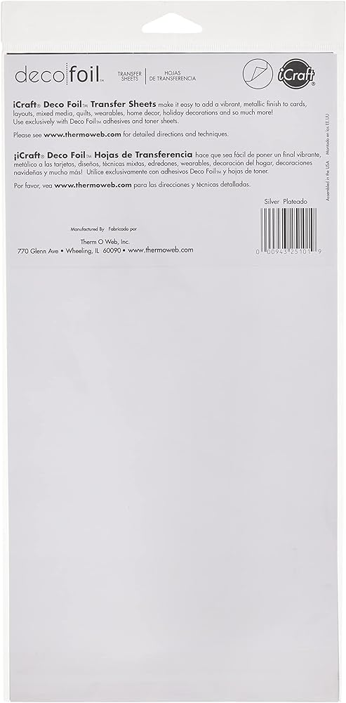 The iCraft Deco Foil line is a fun and creative way to add vibrant color, brilliant shine and a metallic or satin finish to any project. Transfer sheets are available in dozens of metallic, solids, patterns and holographics. Use iCraft Deco Foil Transfer Sheets with iCraft Deco Foil Adhesives and Toner Sheets (sold separately) to create a shining foil finish on a variety of surfaces, from paper to fabric to wood. iCraft Deco Foil is washable on fabric. Deco Foil Toner Sheets are not comaptible with Hot Foil Stamp systems such as Foilquil or Glimmer