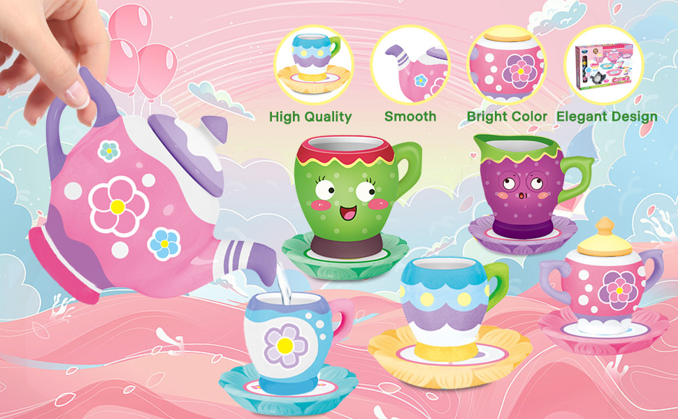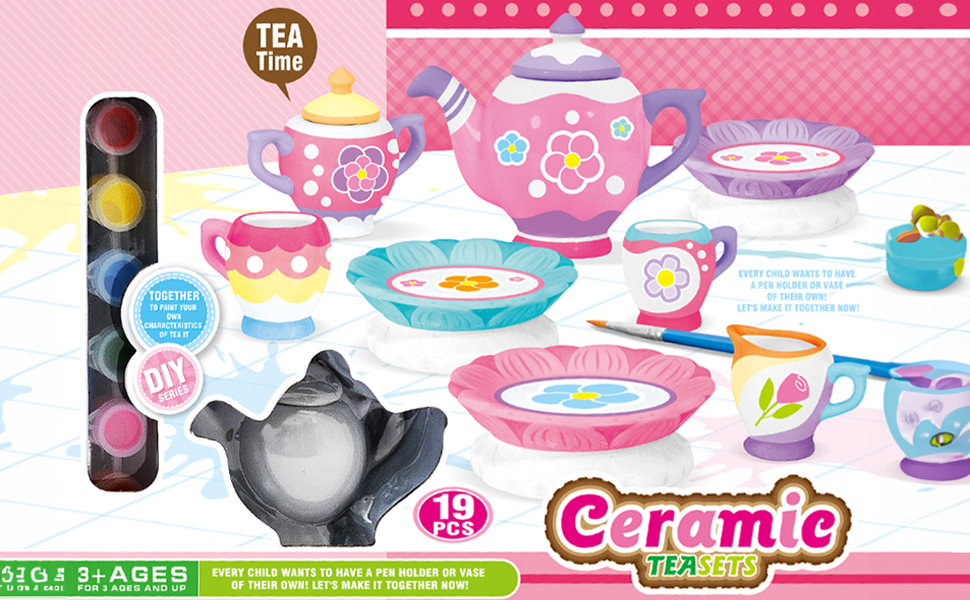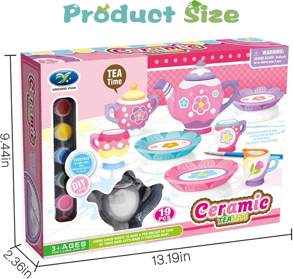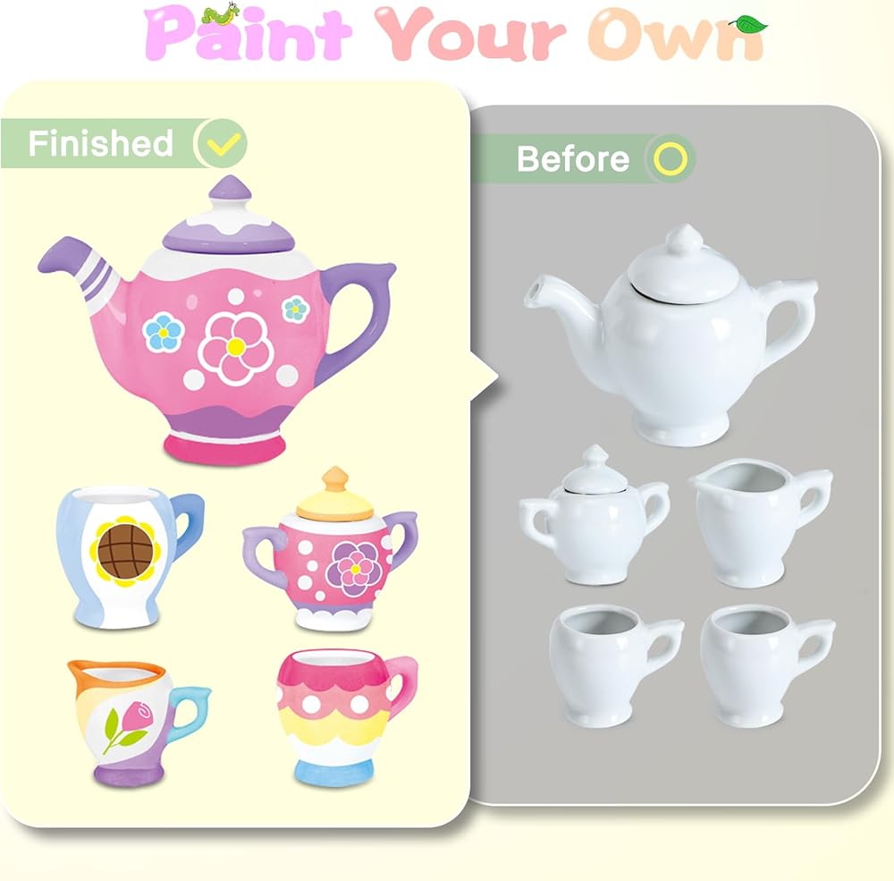 🍰Safe and Durable : Our tea set is made with safe and non-toxic lead-free tin material and BPA-free ceramic.All color of this friendly DIY paint set is safety for kids to paint.