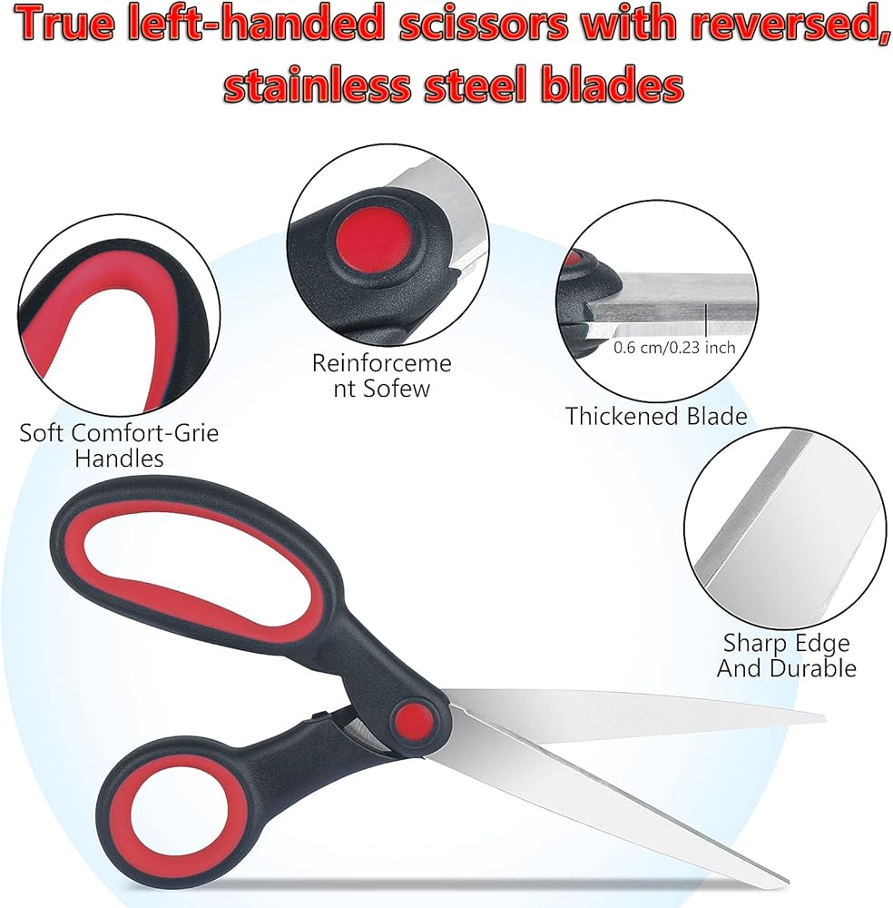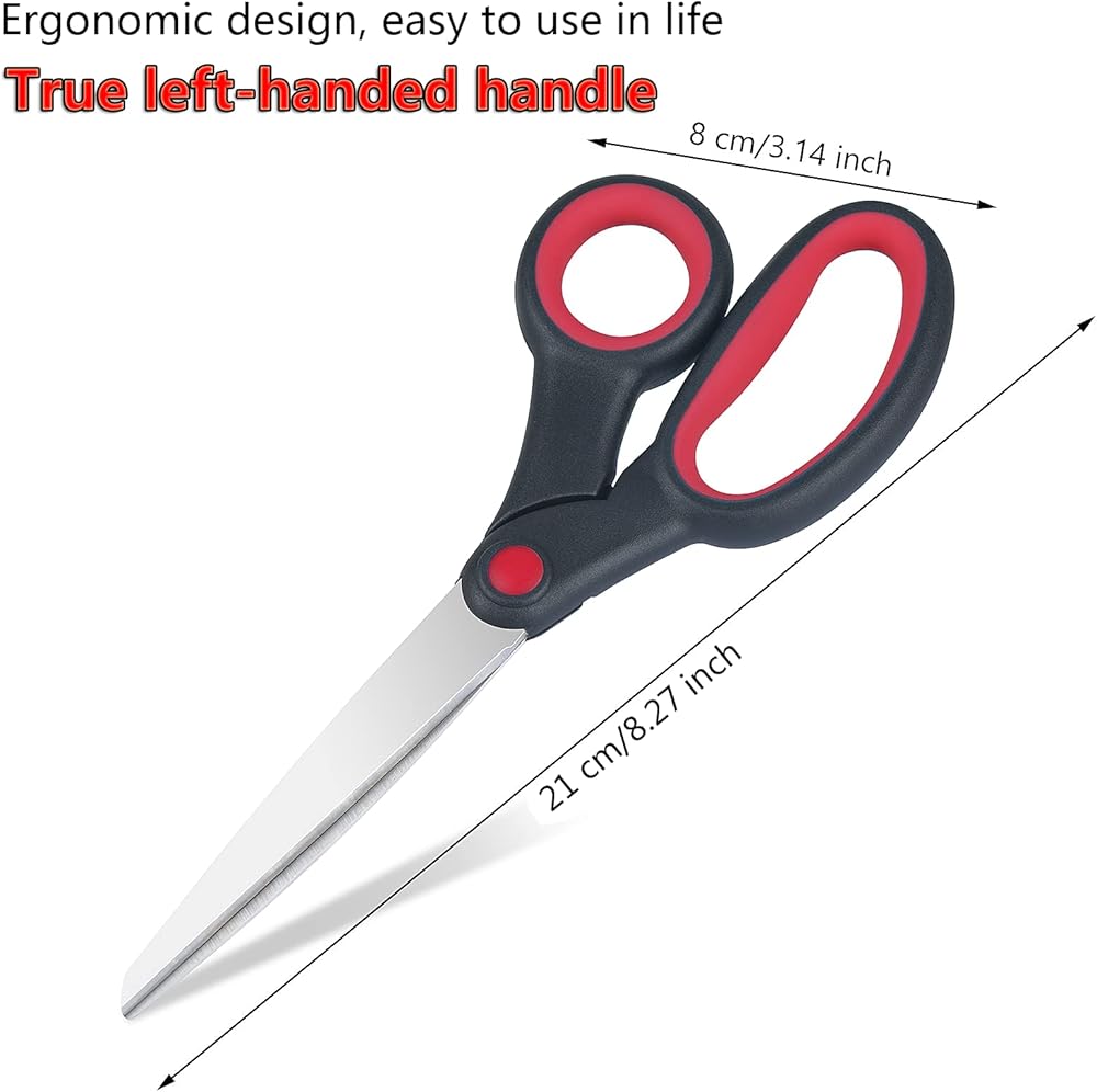 Eleckey Left Handed Scissors for Adults Kids Student All Purpose, 8" Lefty Stainless Steel Scissors for Office Home School Sewing Fabric Craft Supplies, Red/Black (1 Pack)
