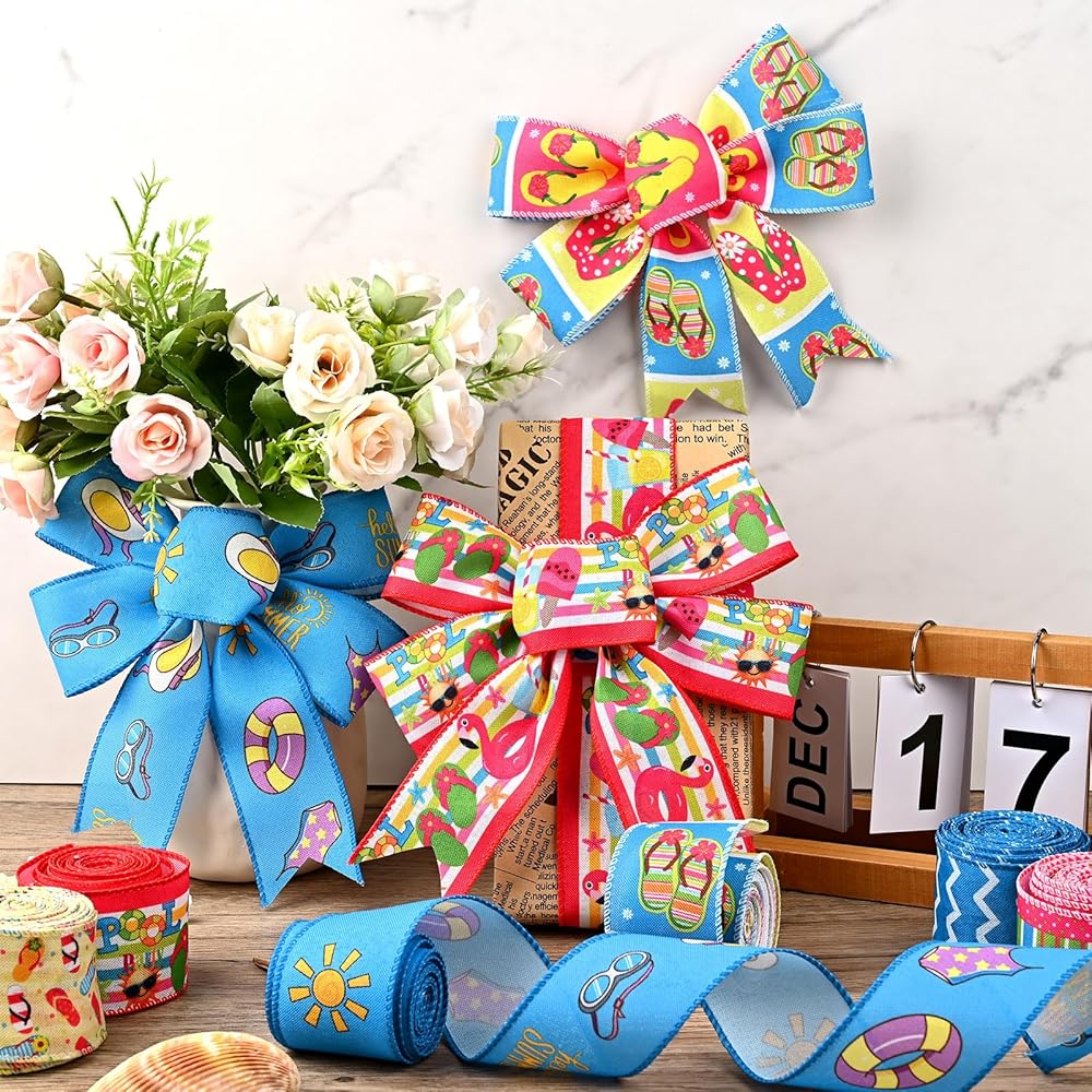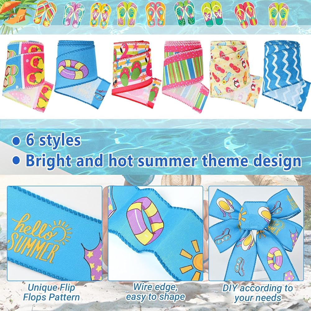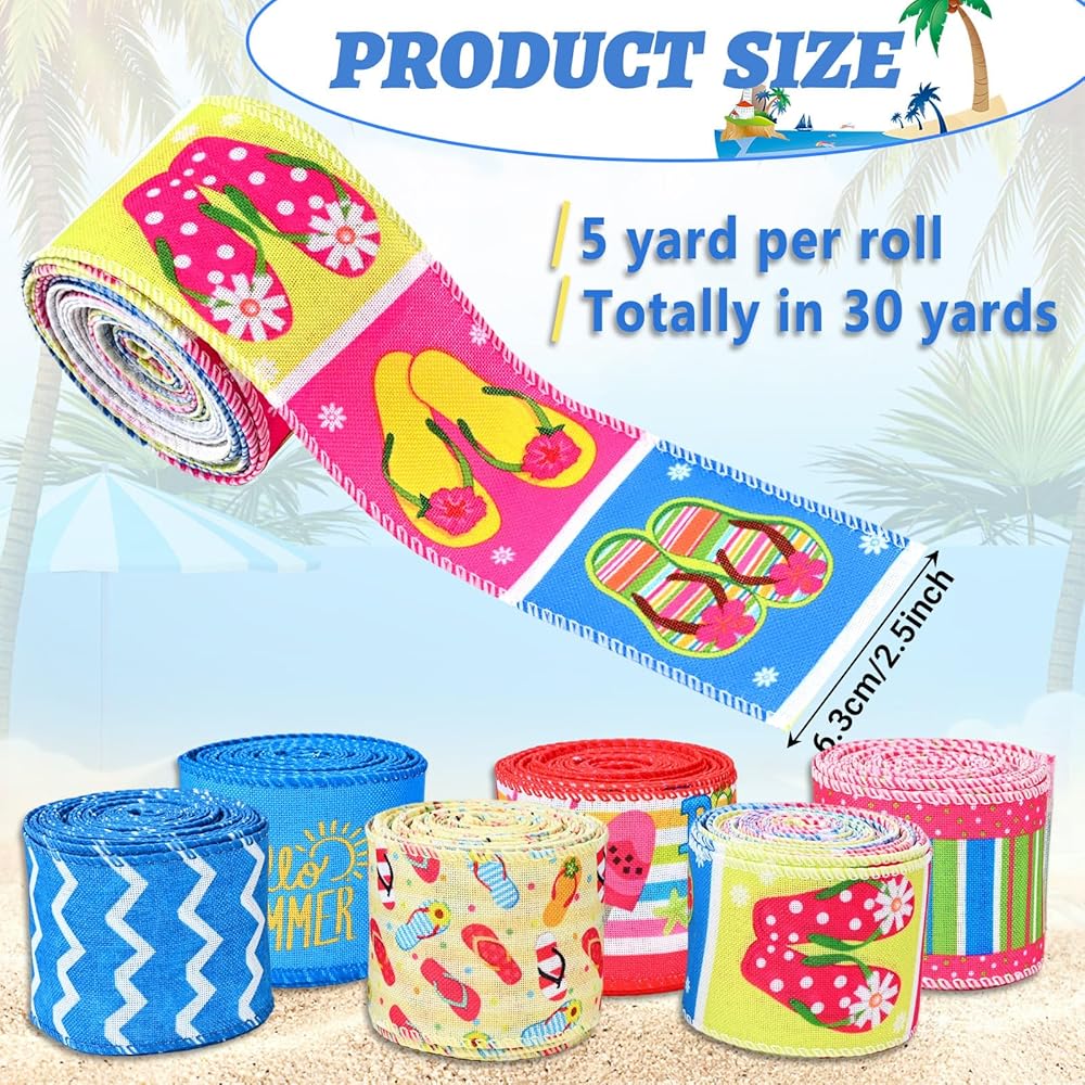 Package Included :you will get 6 rolls of summer style wired edge ribbons in 6 different styles, each roll is about 2.5 inches in width, 5 yards in length,30 yards in total, enough to meet your long term use and decoration needs