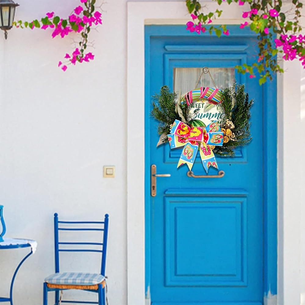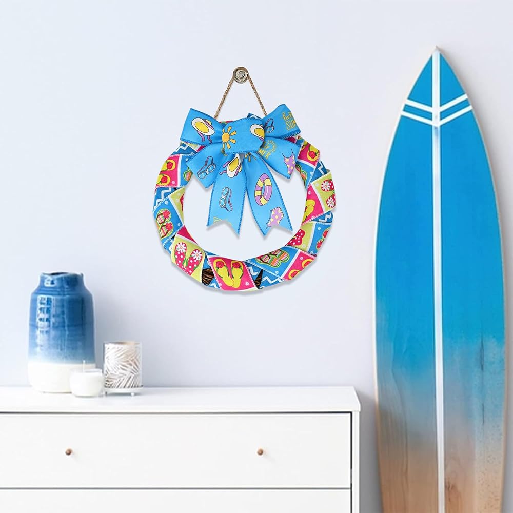 Summer Elements Design :these burlap wired edge ribbons are printed with various patterns, such as flip flop, flower, sunglasses, swimming circleand stripe, rich in colors and vivid in patterns, full of summer atmosphere, to meet your summer home decor theme, creating a warm environment for your family