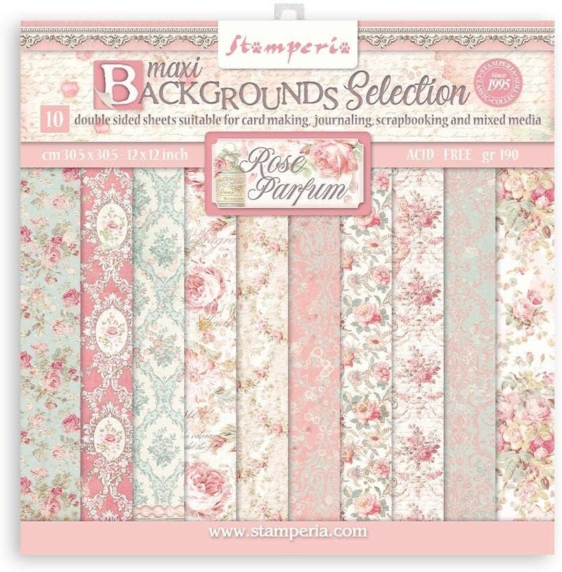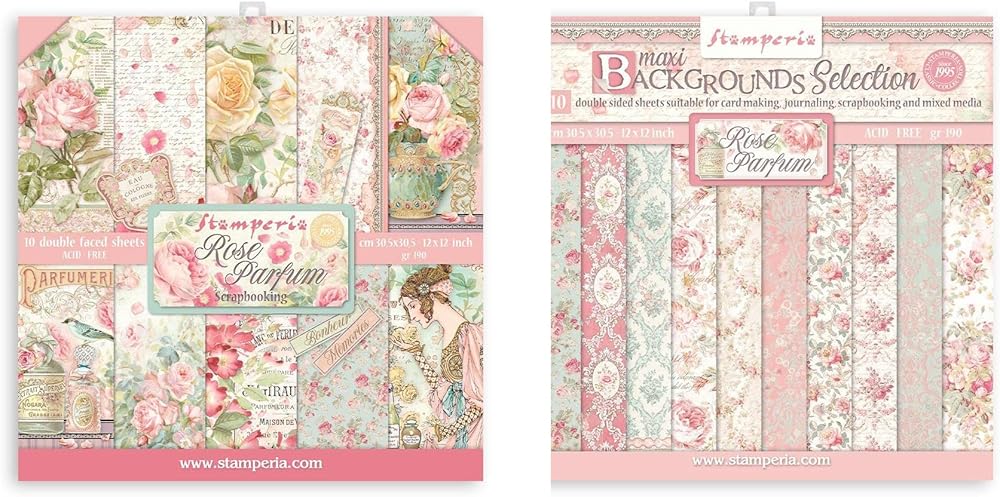 Stamperia International Rose Parfum Bundle: 12" X 12" Double-Sided Paper Pad + 12" X 12" Backgrounds Double-Sided Paper Pad