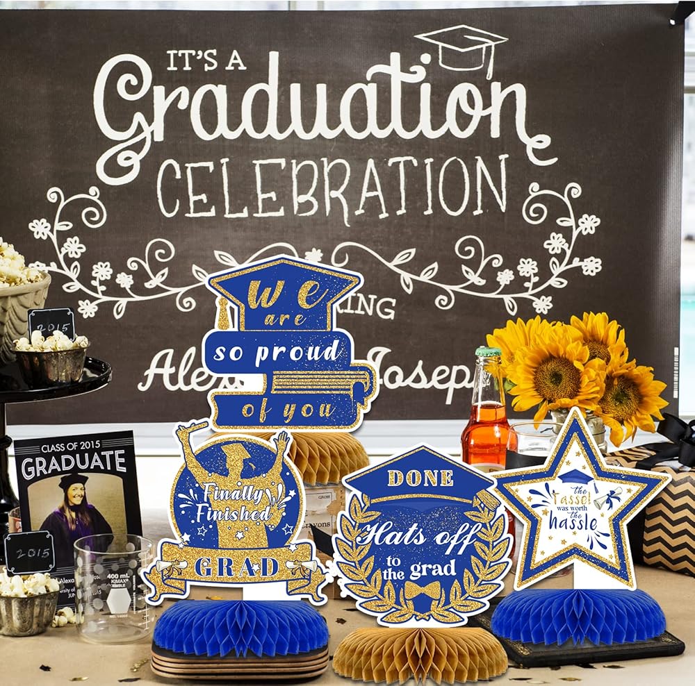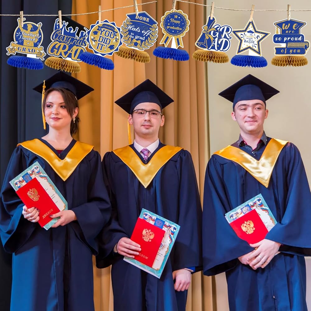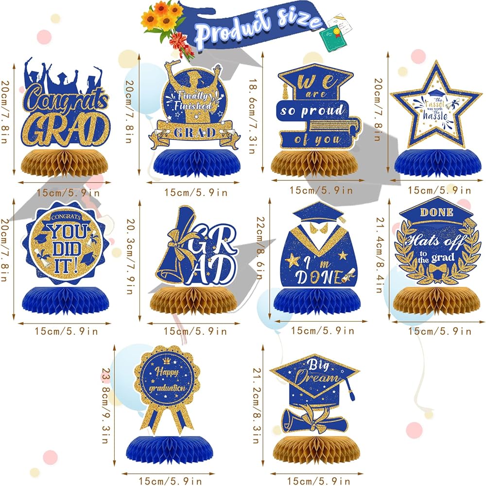 Tarklanda 10PCS Graduation Honeycomb Centerpieces Party Decora Class of 2023,Blue and Gold Congrats Grad Honeycomb 3D Table Toppers Centerpieces for Graduation Photo Prop Party Supplies Favors