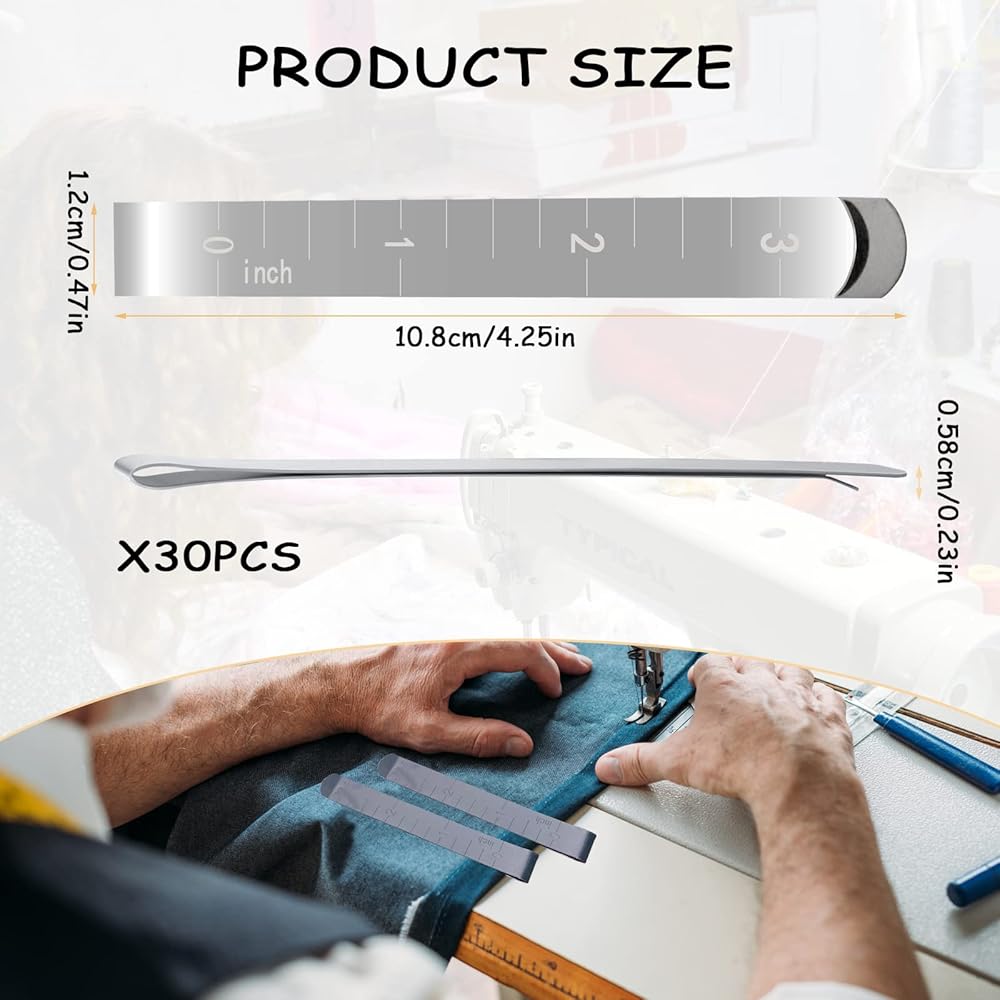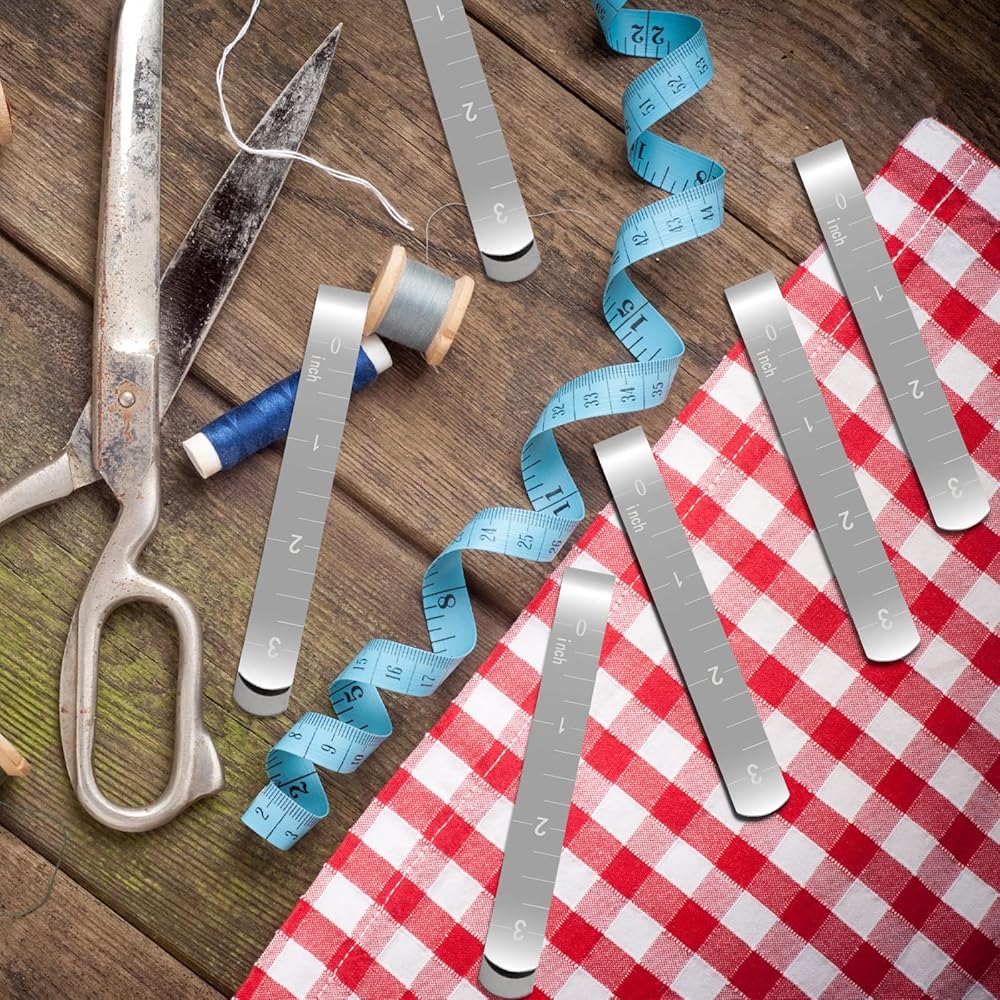 【Quality Material】Made of quality stainless steel, sewing clips for fabric is smooth and plain, oilproof, rustproof, corrosion proof and waterproof, not easy to fade, deform or rust. Tough marking for long term use - the markings engraved on the hem ruler.