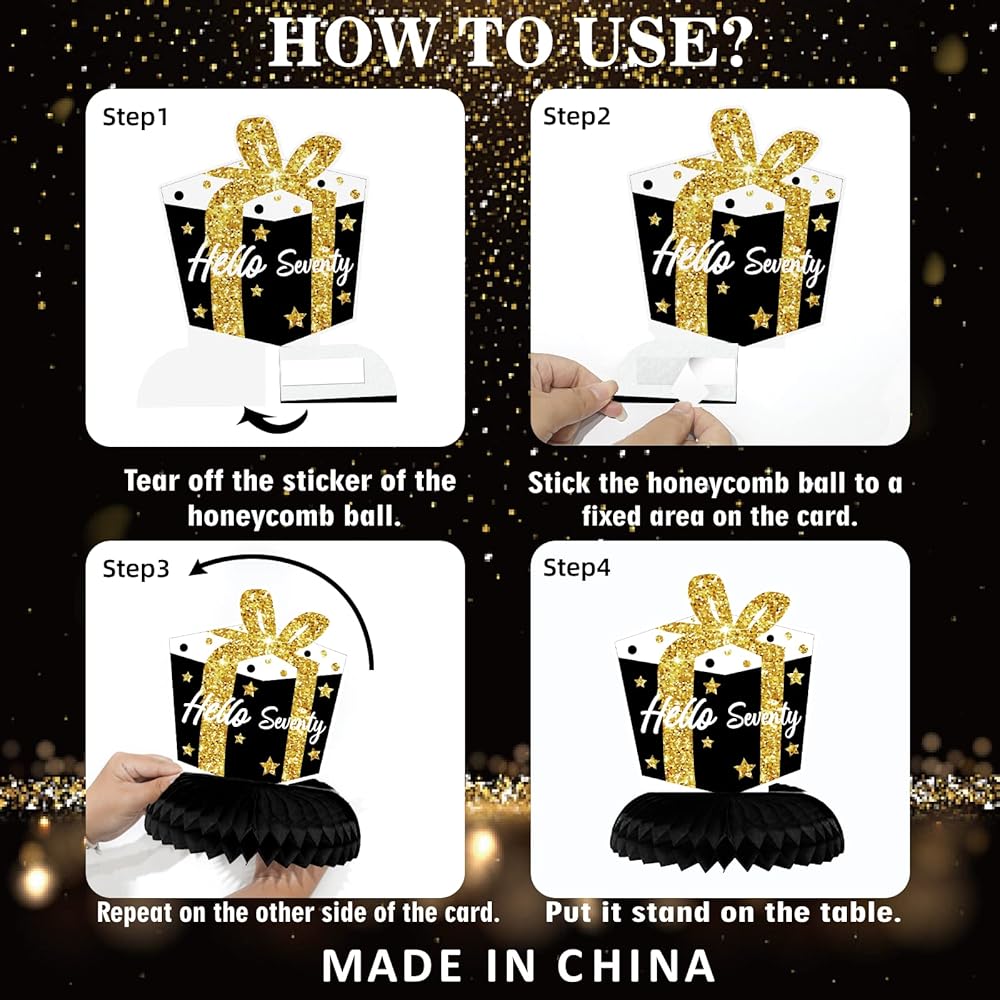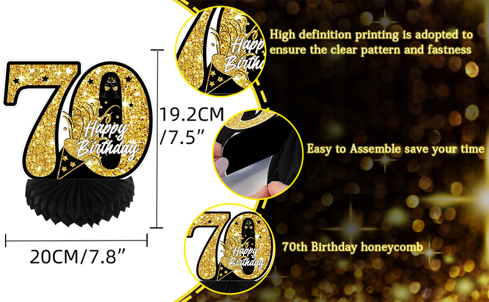 High Quality - The 70th birthday table centerpiece decorations is made of double-sided thick cardstock and solid-firm honeycomb orbs, which means you can enjoy three-dimensional and beautiful patterns from any angles.High definition printing is adopted to ensure the clear pattern and fastness. Honeycomb shall be firm, reliable, reusable and easy to operate. These 70th birthday decorations are sturdy, non-toxic and no odd smell, which are a good choice for your birthday party.